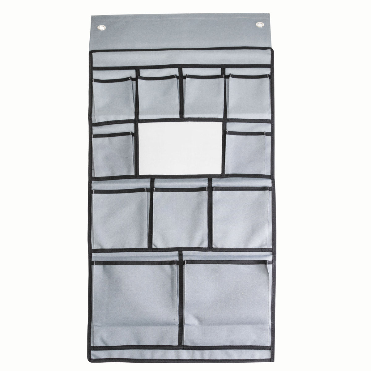 Wohnwagen-Hängeorganizer mit 11 Fächern und Spiegel 90 x 45 cm grau/schwarz - Aufhängung mittels Ösen Klettverschluss oder Keder Hängeaufbewahrung