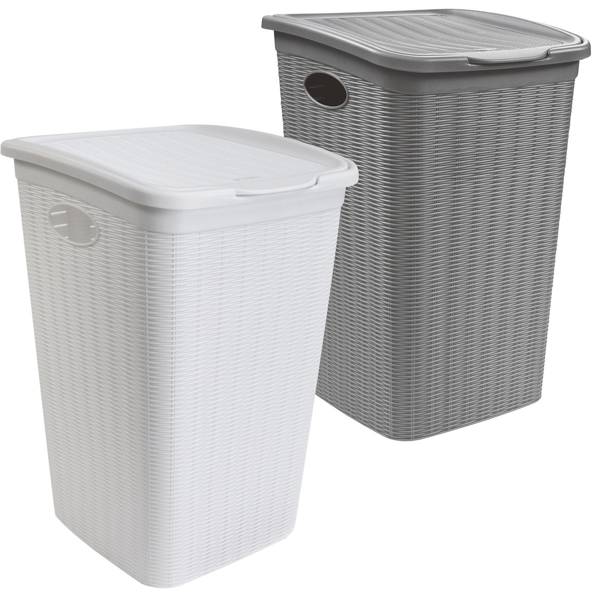 2x Wäschekorb 50 Liter groß Weiß und Grau - Rattanoptik mit Deckel - Sortierer Wäschesammler mit Löcher 38x36x54cm Wäschebox Wäschesortierer Haushaltskorb Korb Haushalt Kunststoff Wäschetruhe Wäschetonne Wäschesack