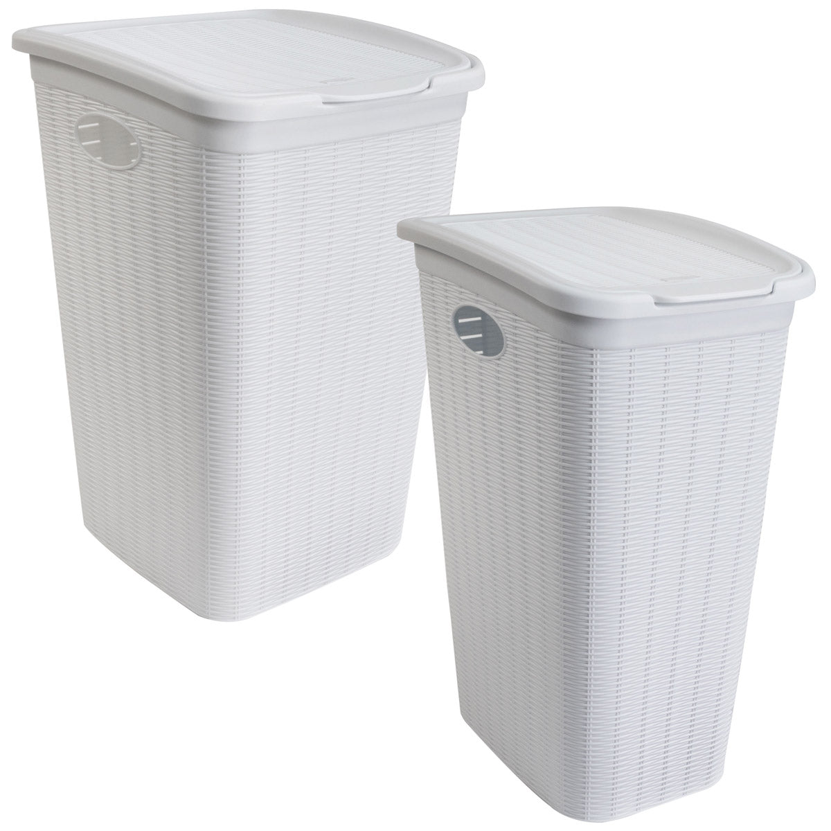 Wäschekorb 36/50 Liter schmal und breit Weiß - Rattanoptik mit Deckel - Wäschesammler mit Löcher 29/36 cm breit Wäschebox Wäschesortierer Haushaltskorb Korb Haushalt Kunststoff Wäschetruhe Wäschetonne Wäschesack