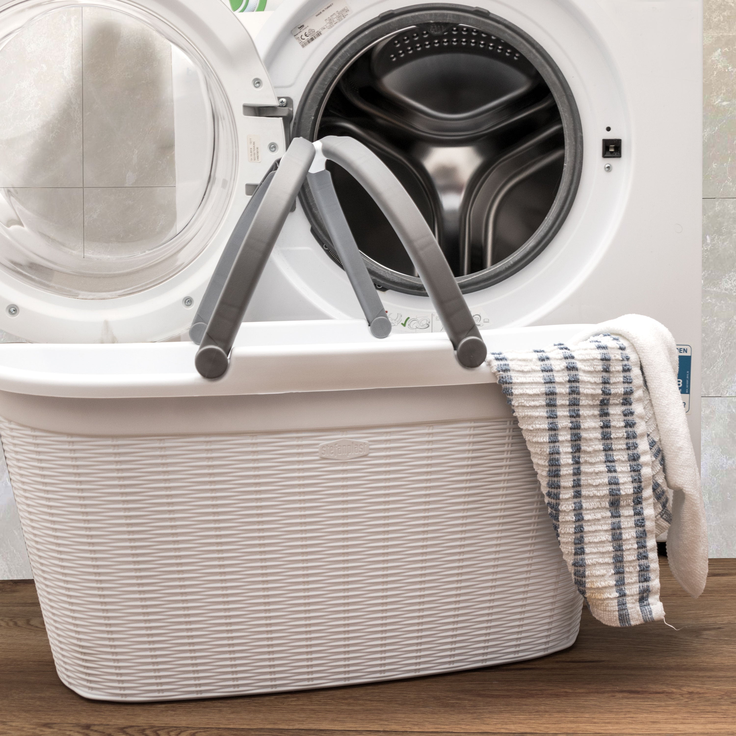 Wäschekorb 35 Liter mit 2 Henkeln - 57.5x37x29 cm Rattan-Design ohne Löcher - Haushaltskorb Wäschewanne Tragekorb Wäschesammler Wäschesortierer Wäschebox - Aufbewahrung Kunststoff