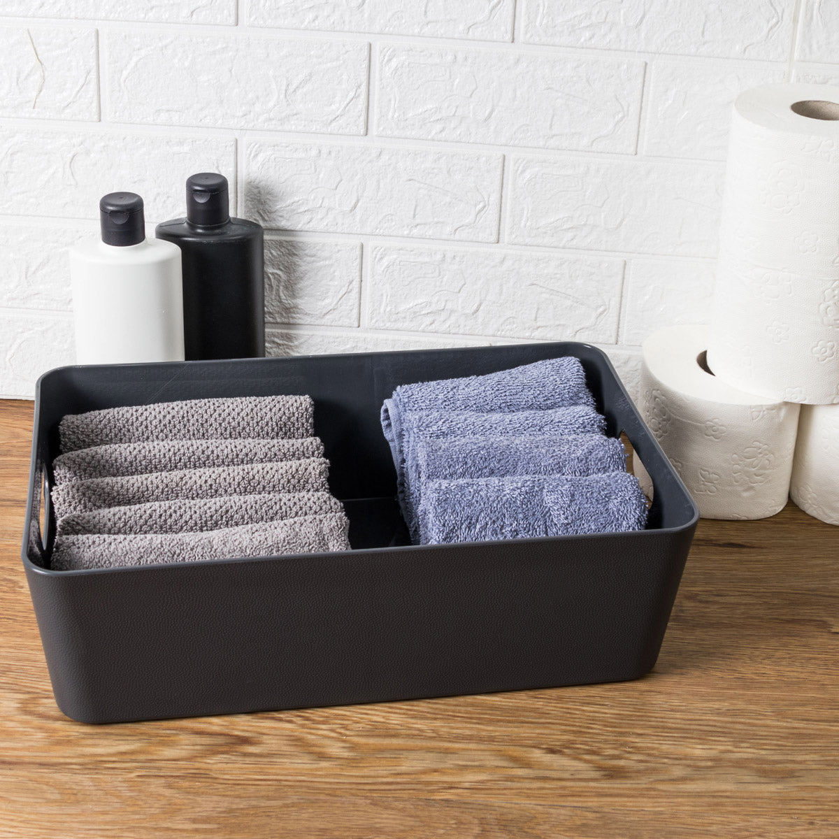 ORDNUNGSBOX: anthrazit - Außenmaße oben: 39,5 x 24,5 x 12 cm - Innenmaße Boden: 37 x 22 cm - 10 Liter LEDEROPTIK: Die Oberfläche der Boxen verfügt über eine Struktur....