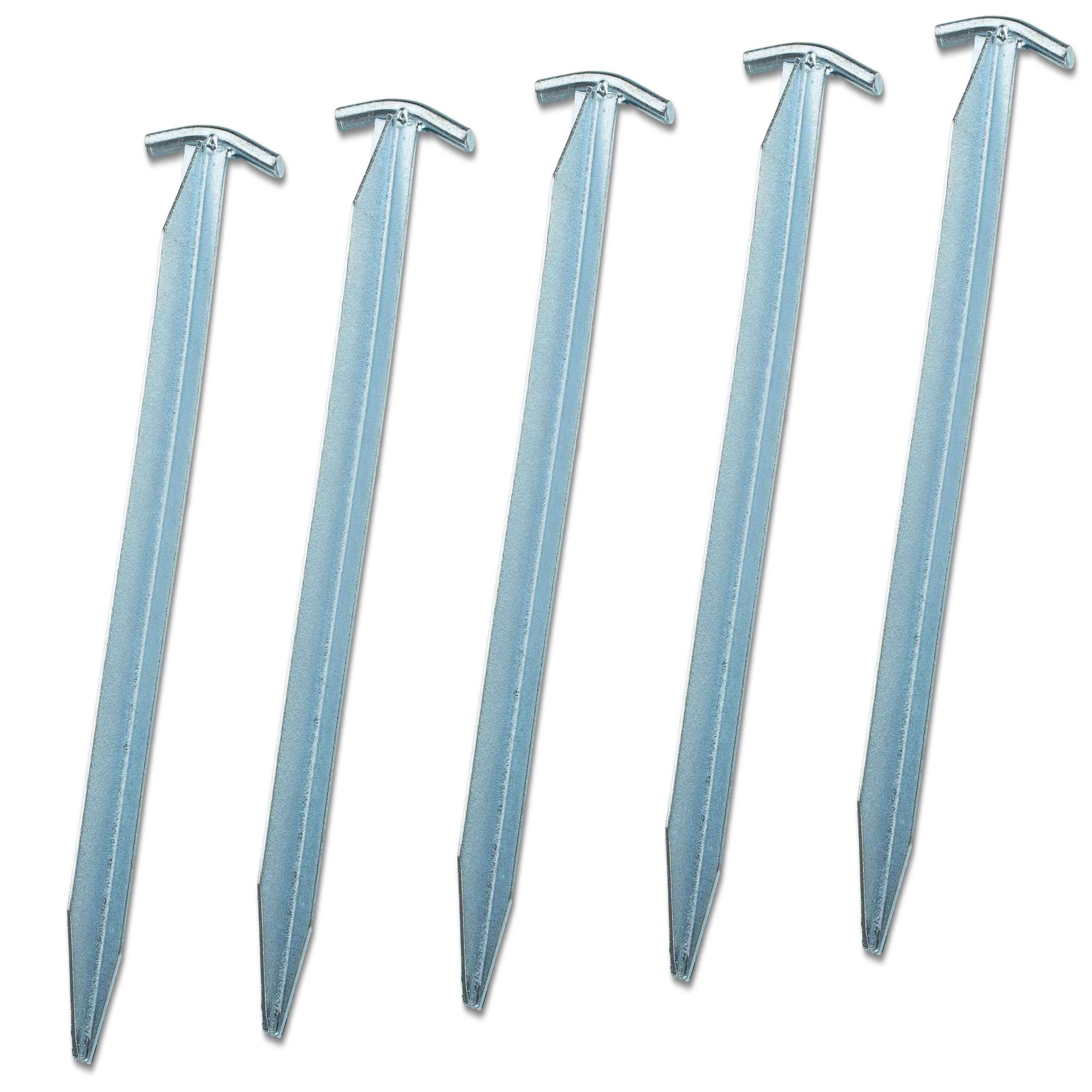 5 Stück Stahl Hering 30 cm - T-Profil - Felsnagel Zelthering harter Boden Zeltnagel Zeltpflock Erdspieß Camping Zubehör Outdoor Set