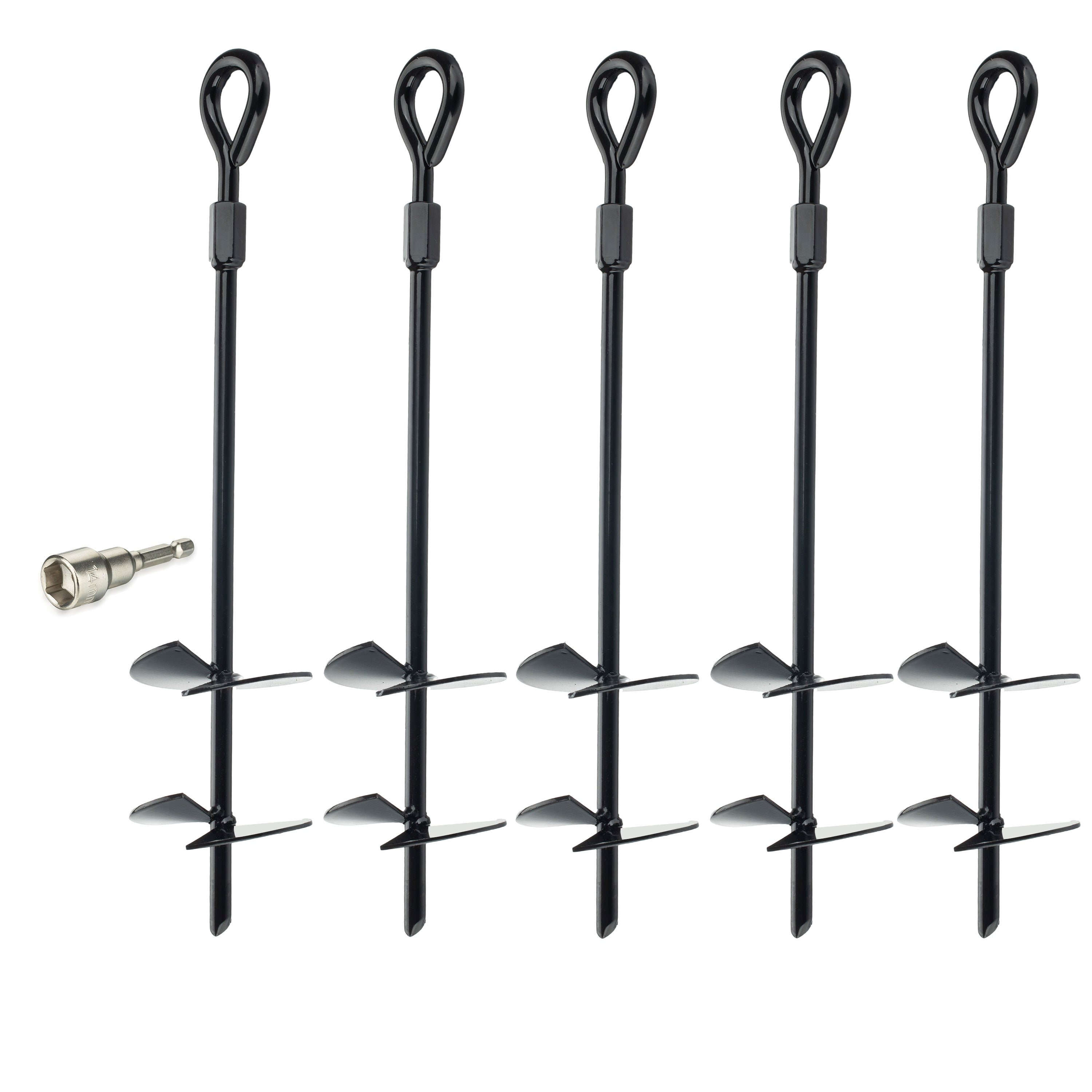 5 Stück Telleranker 37 cm Bodenanker mit Einschraubhilfe Spirale Spiralhering Spiralbodenpfahl mit 2 Spiraltellern Outdoor Hund Erdanker