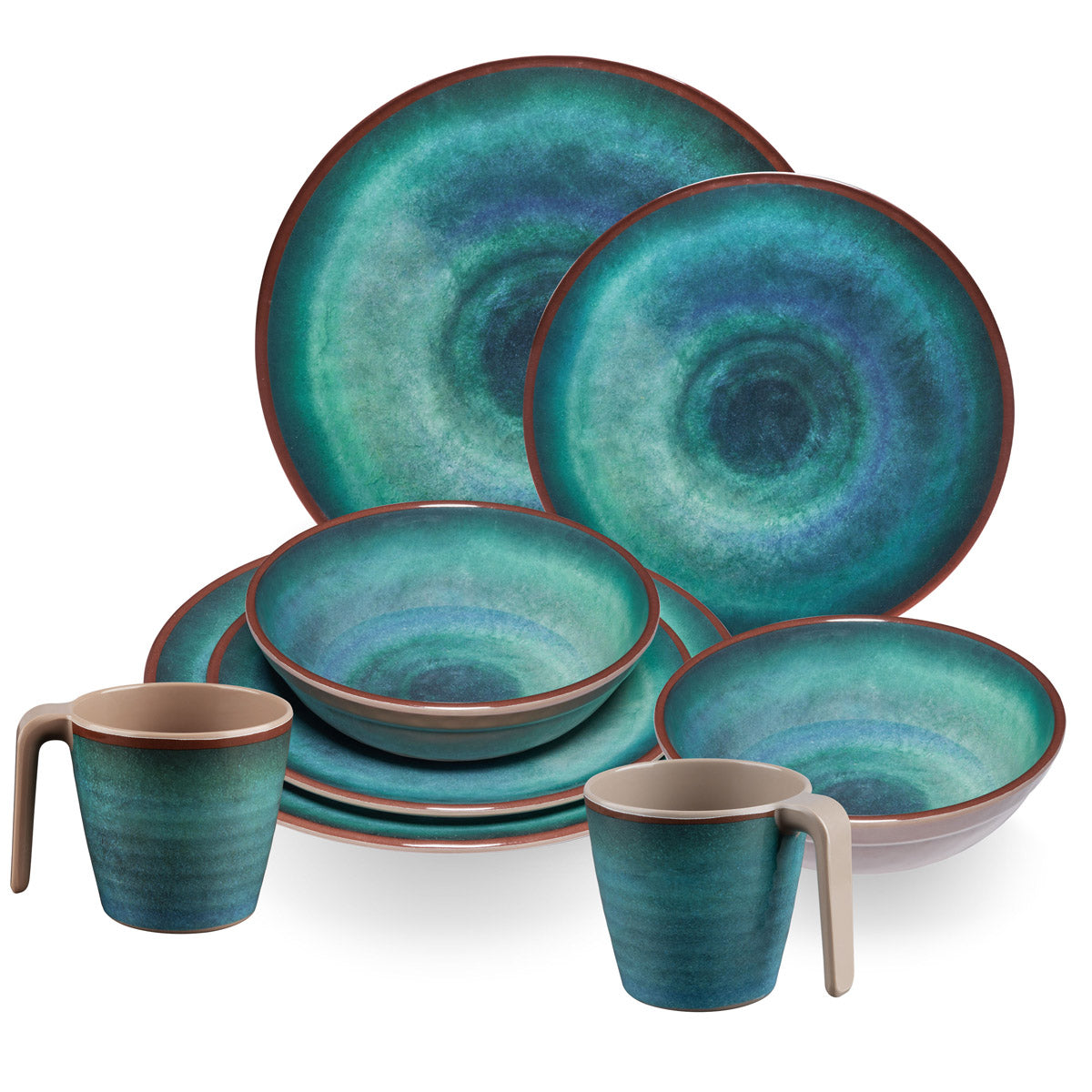 Melamin Geschirr Set Jesolo Grün für 2 Personen - 8 Teile - mit Tassen Steingutoptik Spülmaschinengeeignet Campinggeschirr Wohnwagen Camping Festival