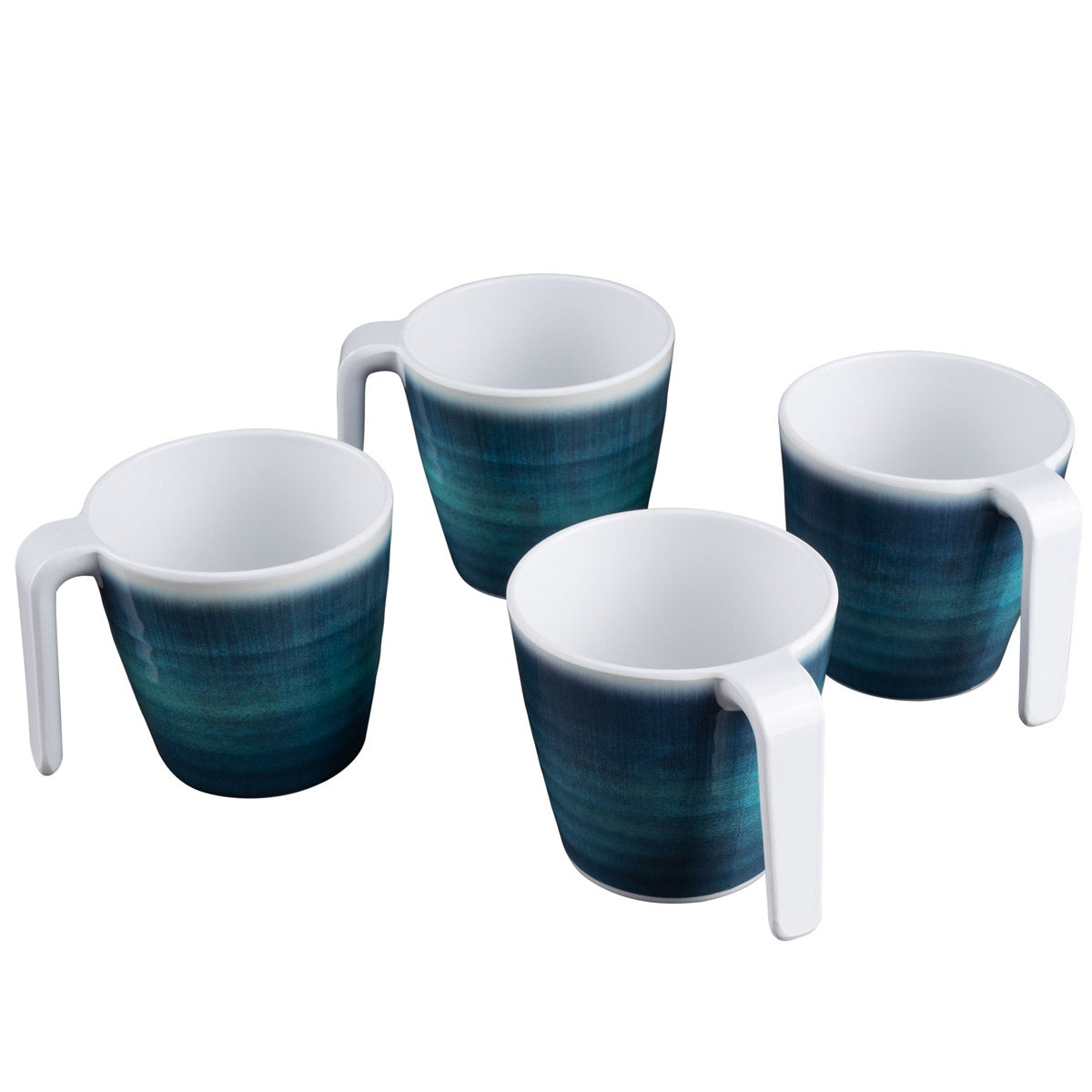 Melamin 4 Tassen 350 ml ideal für Camping - Jesolo Blau - Stapelbar - Steingutoptik Trinkbecher Kaffeetasse Kaffeebecher