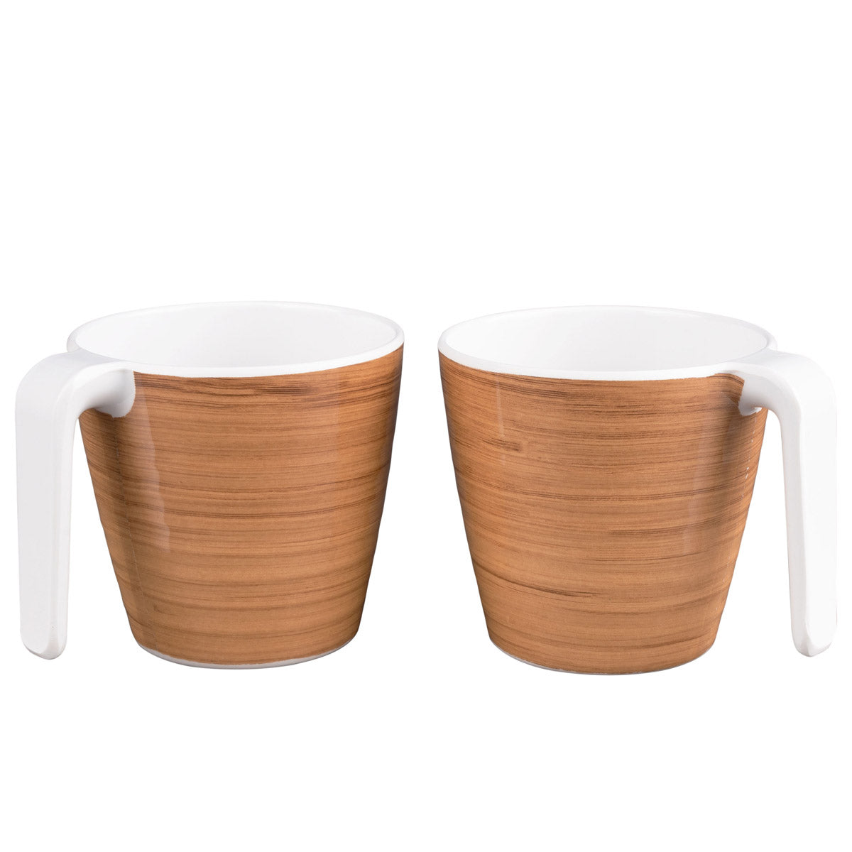 2 Stück Melamin Tasse 350 ml ideal für Camping - Bambi Braun - Stapelbar - 2 Personen Holzoptik Trinkbecher Kaffeetasse Kaffeebecher