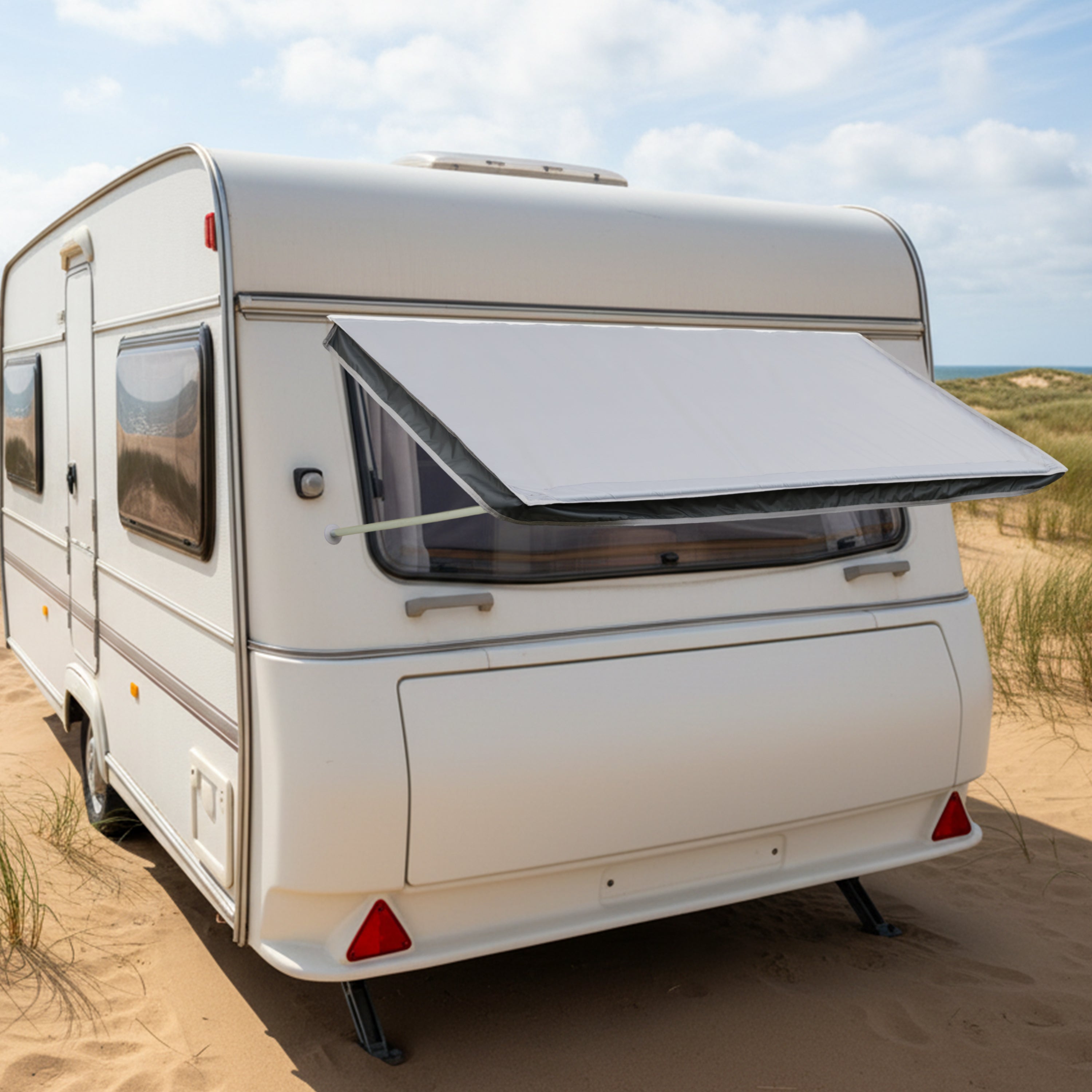Fenster Markise Wohnmobil 180x75cm mit Keder und Saugnäpfen Sonnensegel Vordach Vorzelt Fenstermarkise Regenplane Sonnenschutz für Wohnwagen Wasserabweisend 1500mm UV Schutz Grau Camping Zubehör