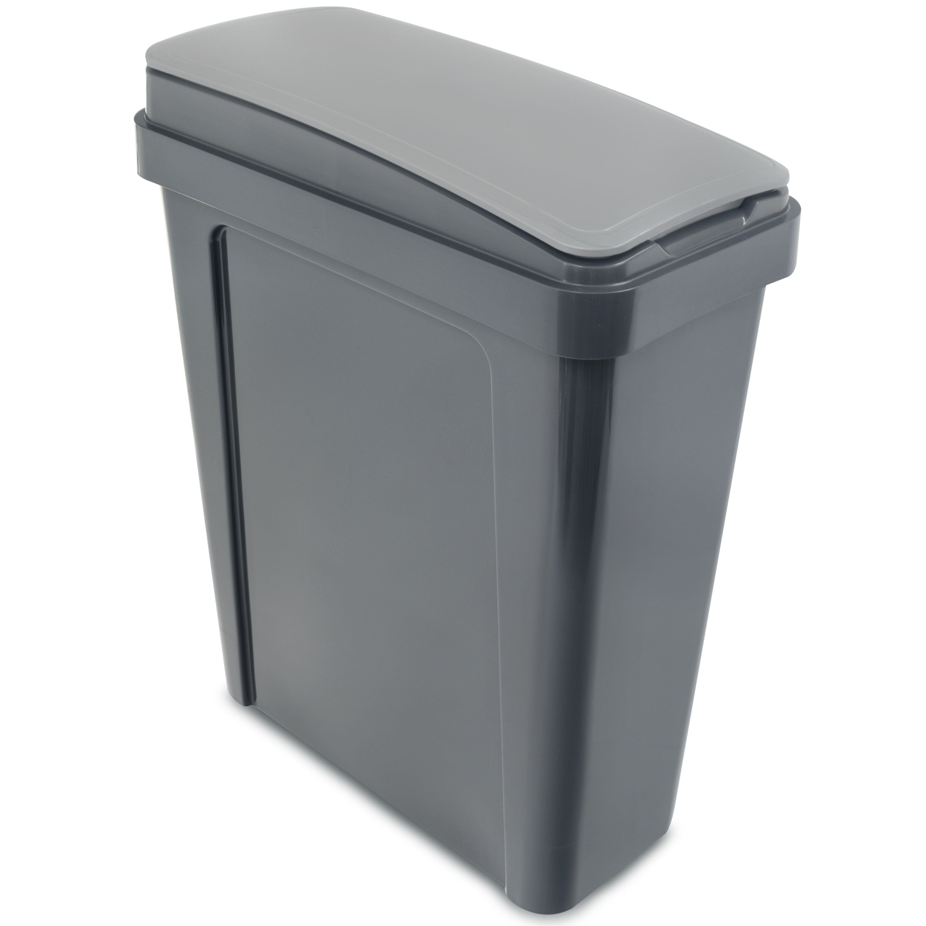 25 Liter Mülltonne Dunkel-Grau Recyclingtonne 20x40x50cm mit abnehmbarem Klappdeckel - Schmal Küche Mistkübel Trash Bin Groß Küchenabfalleimer Papiermülleimer