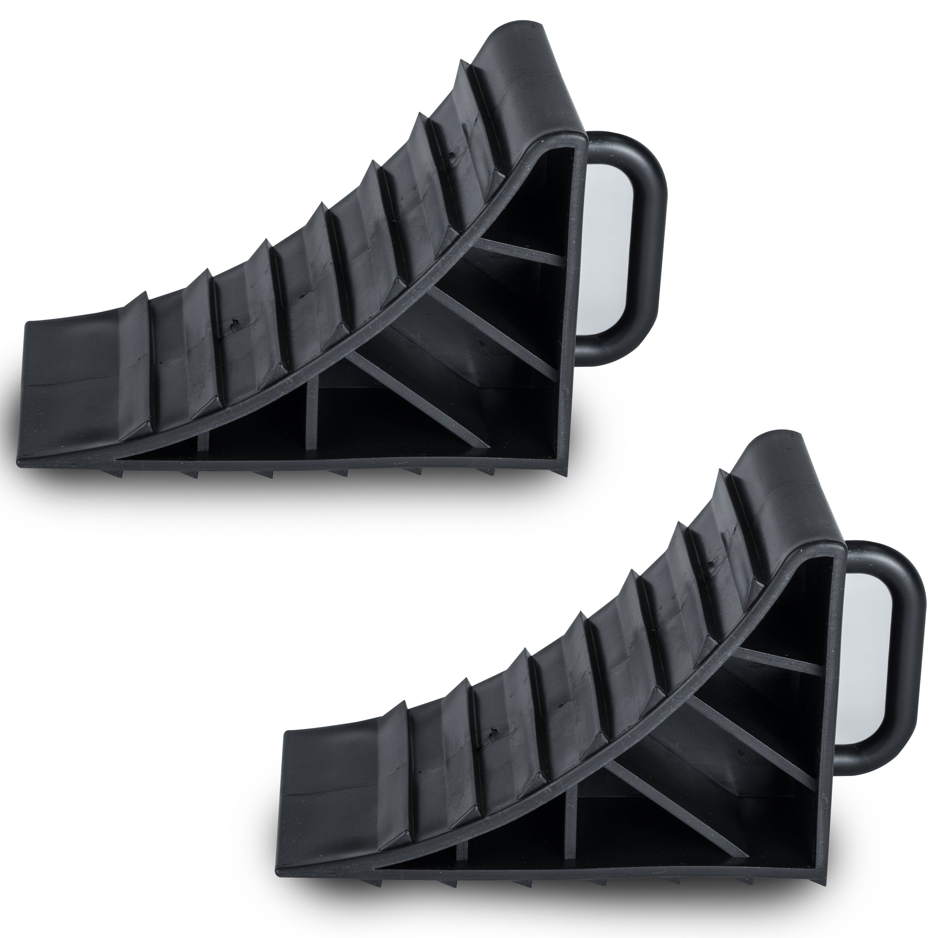 2x Unterlegkeile 15x10x9 cm für PKW Wohnmobil Wohnwagen aus Kunststoff mit Griff Bremskeil Keil Camping Zubehör Schwarz Parkhilfe Einparkhilfe Parkstopper Standkeil Auto Parken Anhänger