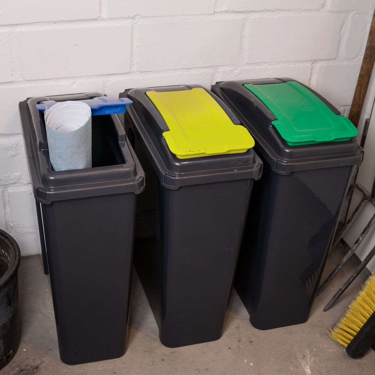 3x 25 Liter Mülltonne Schwarz Recyclingtonne 19x40x50cm mit abnehmbarem Klappdeckel - Schmal Küche Mistkübel Trash Bin Gelber Sack Groß Küchenabfalleimer Papiermülleimer