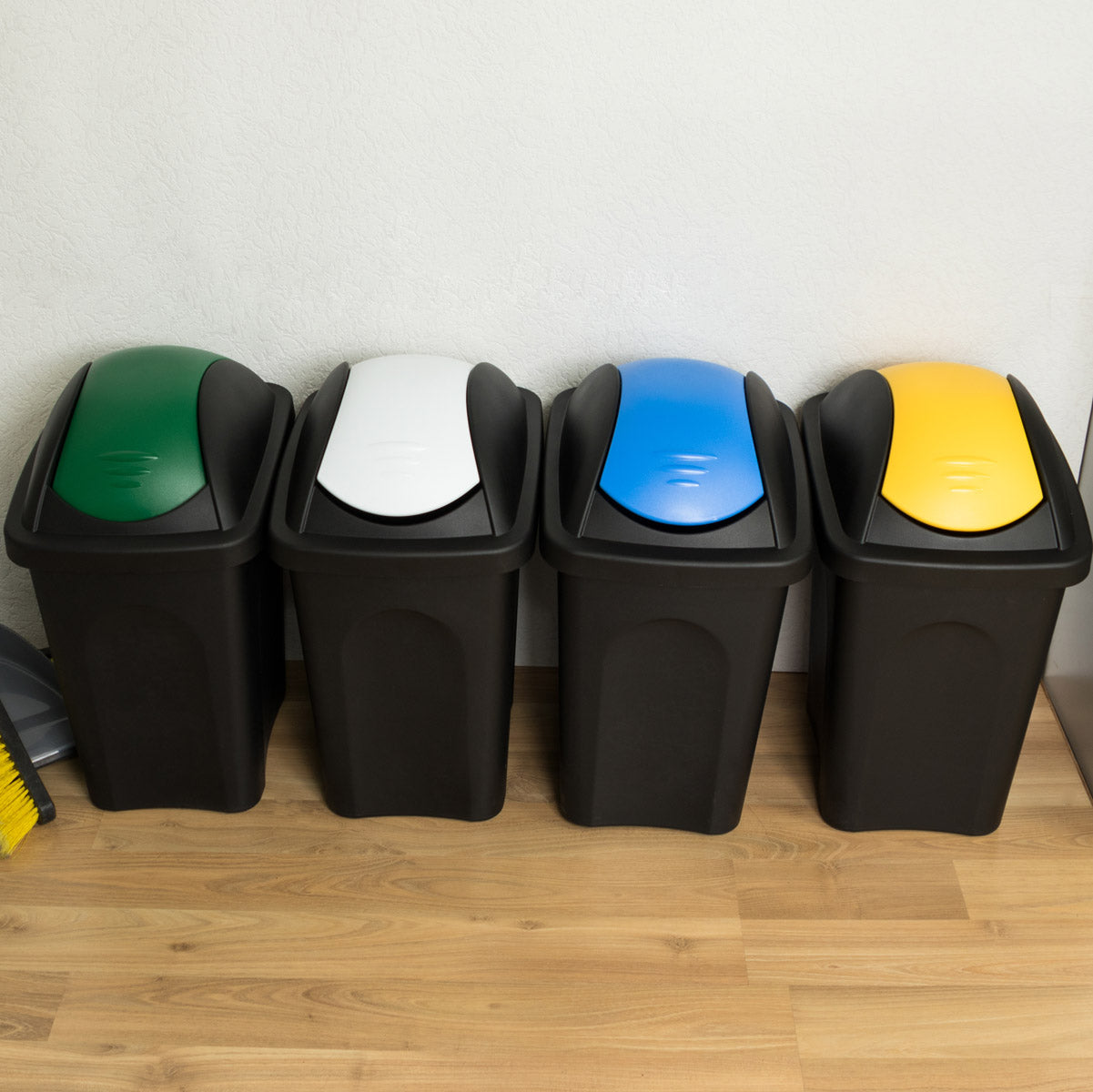 4x Mülleimer 30 Liter schwarz mit farbigem Schwingdeckel 29x36x51 cm Küche eckig Mülltonne Abfalleimer Küche Mistkübel Trash Bin Gelber Sack