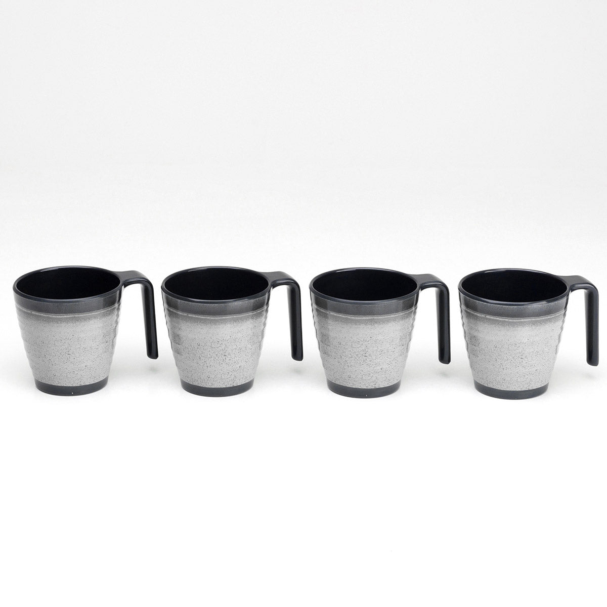 Melamin 4 Tassen 300 ml ideal für Camping - Schwarz-Grau - Stapelbar - Steingutoptik Trinkbecher Kaffeetasse Kaffeebecher