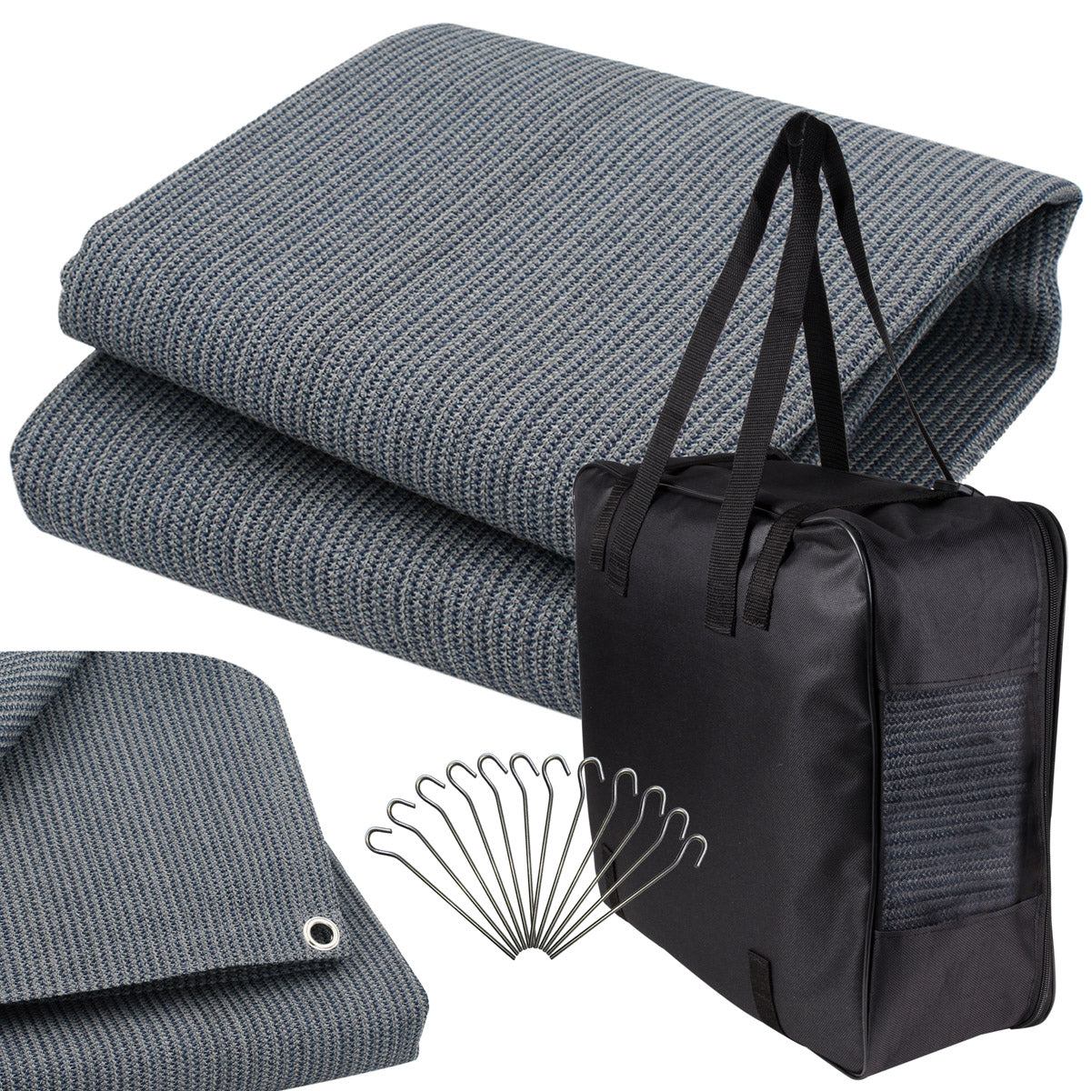 Vorzeltteppich + Heringe Outdoorteppich GRAU-BLAU Zeltteppich Zeltunterlage Outdoor Camping Vorzelt Teppich Matte Campingteppich Vorzeltboden Zeltboden, Balkon, Terasse, große XL Picknickdecke