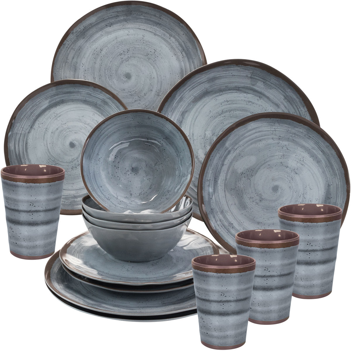 Melamin Geschirr Geschirrset 4 Personen Campinggeschirr Tafelservice 16 teilig Tafelgeschirr Camping Outdoor Essgeschirr Kombiservice 16 tlg modernes Melamingeschirr Picknickgeschirr Steingut Optik