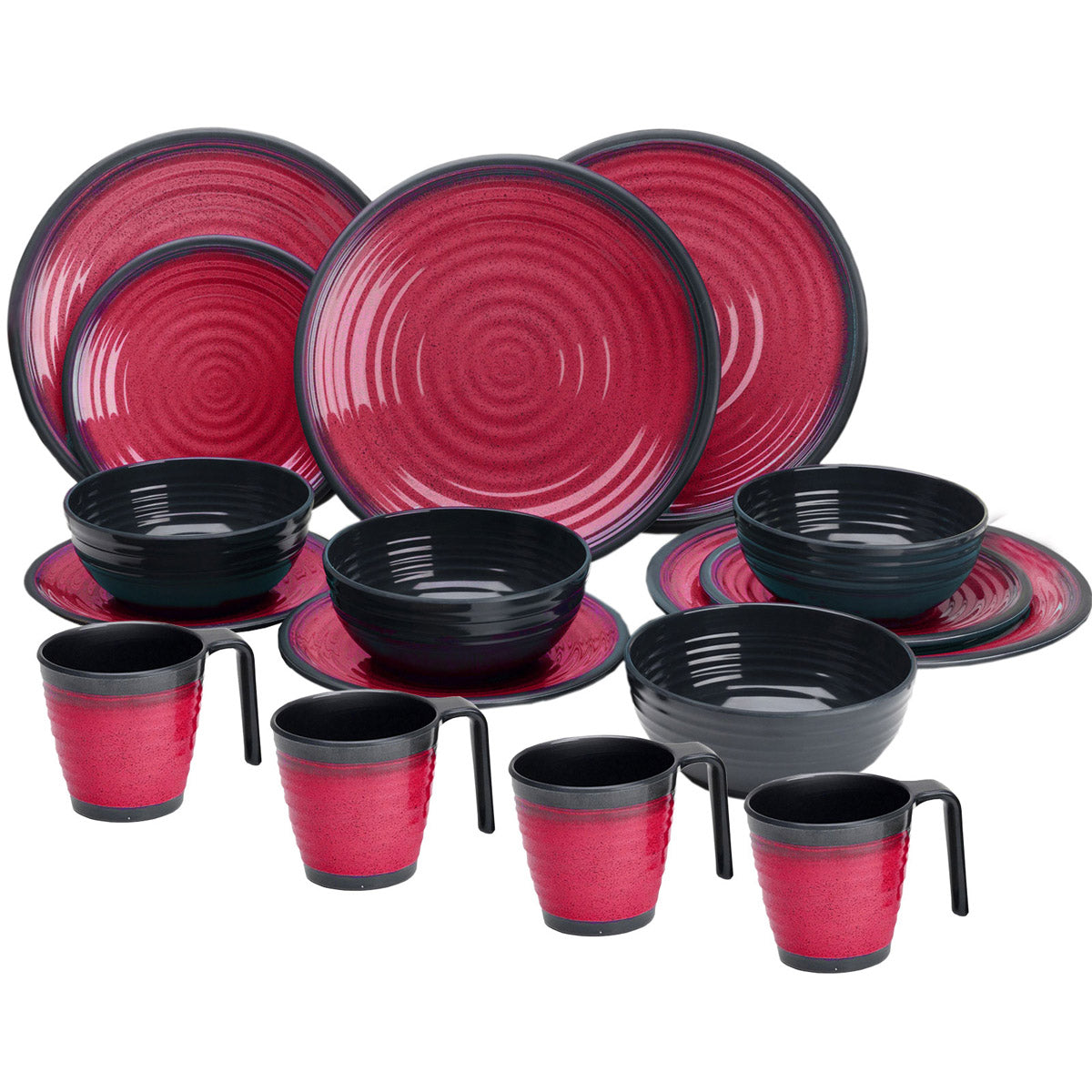 Melamin Geschirr Geschirrset 4 Personen Steingut Optik Campinggeschirr Tafelservice 16 teilig Rot Tafelgeschirr Camping Outdoor Essgeschirr Kombiservice 16 modernes Melamingeschirr Picknickgeschirr