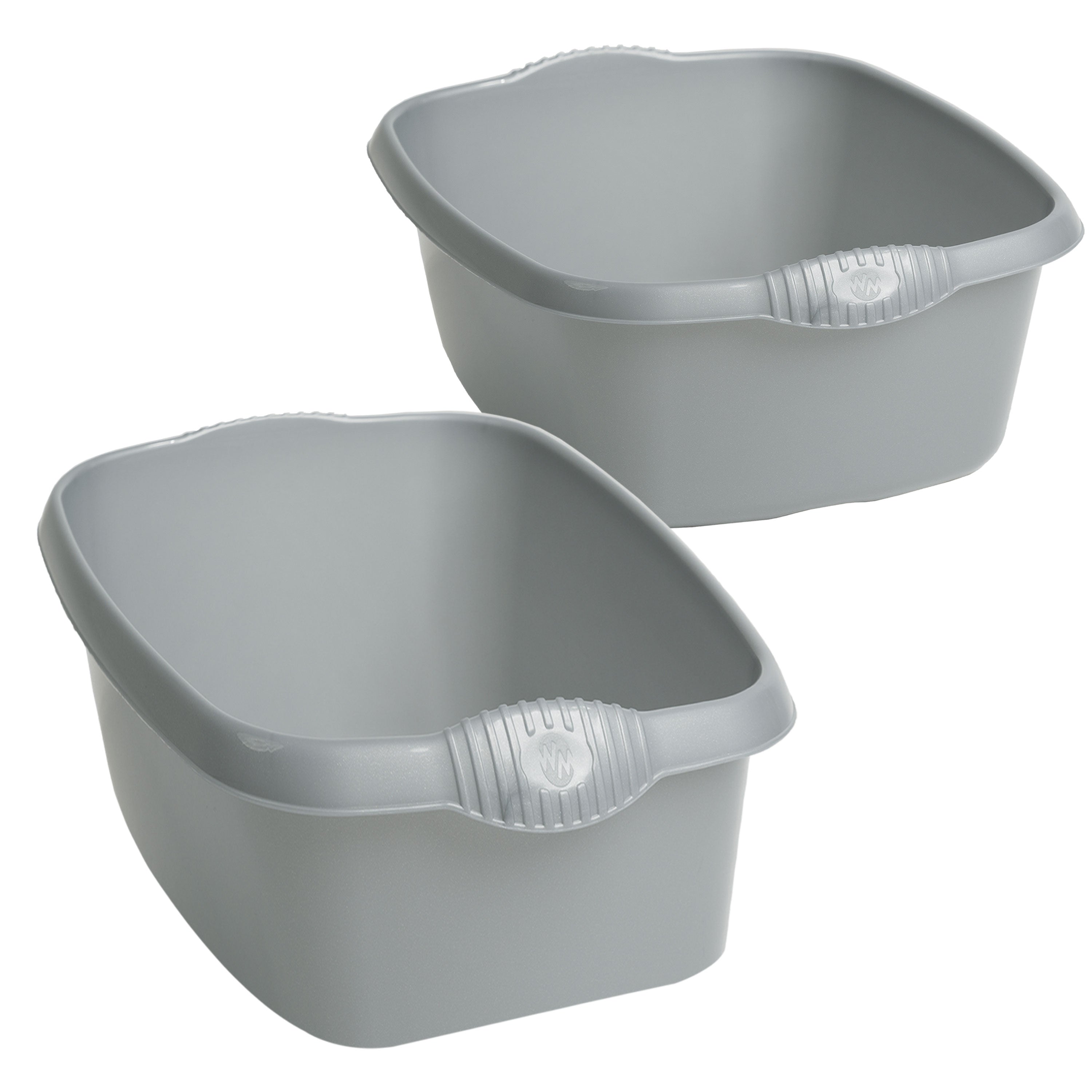 2x Schüsseln eckig - grau - Waschschüssel Spülschüssel Wasserschüssel Lebensmittelecht Kunststoff Spüle Haushaltsschüssel Universal Küchenschüssel Pflege nestbar Waschbecken