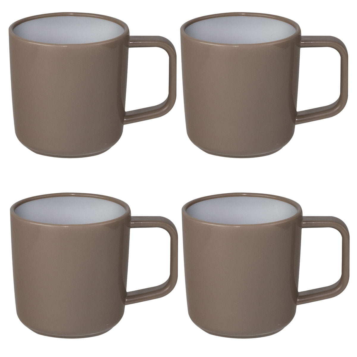 ABS Camping Tassenset non-slip elegante Farben 4 Tassen je 350 ml - braun weiß Campinggeschirr Geschirr Personen Picknick Camping Outdoor