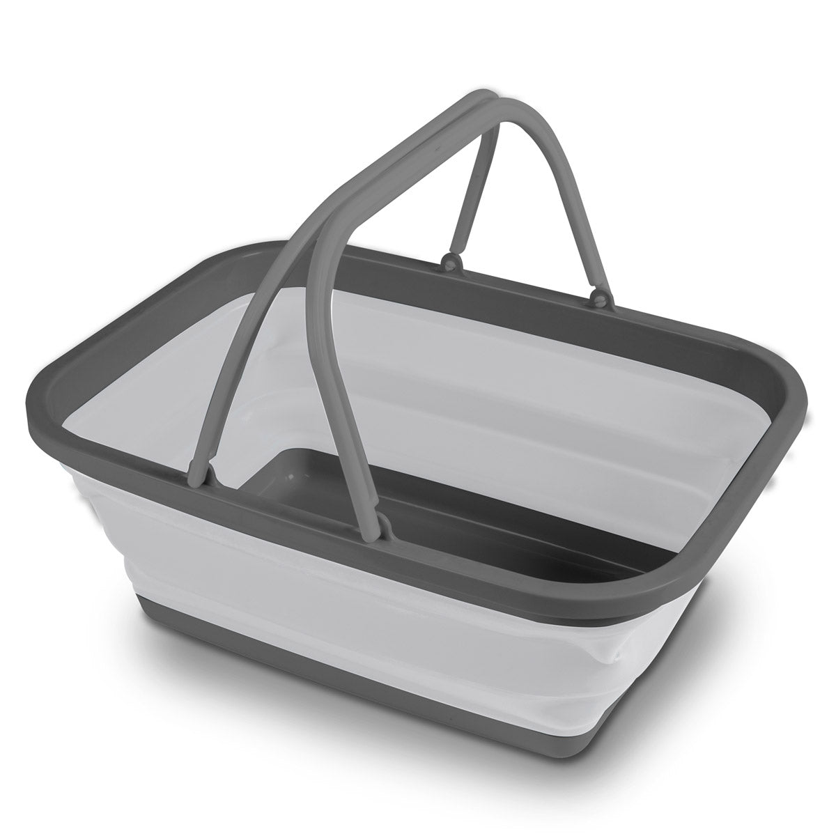 Faltbarer Schüssel mit Tragehenkel - rechteckig - 10 Liter - 38x29x15 cm gefaltet 5 cm hoch - grau - Waschschüssel Spülschüssel Wasserschüssel - Kunststoff Spüle