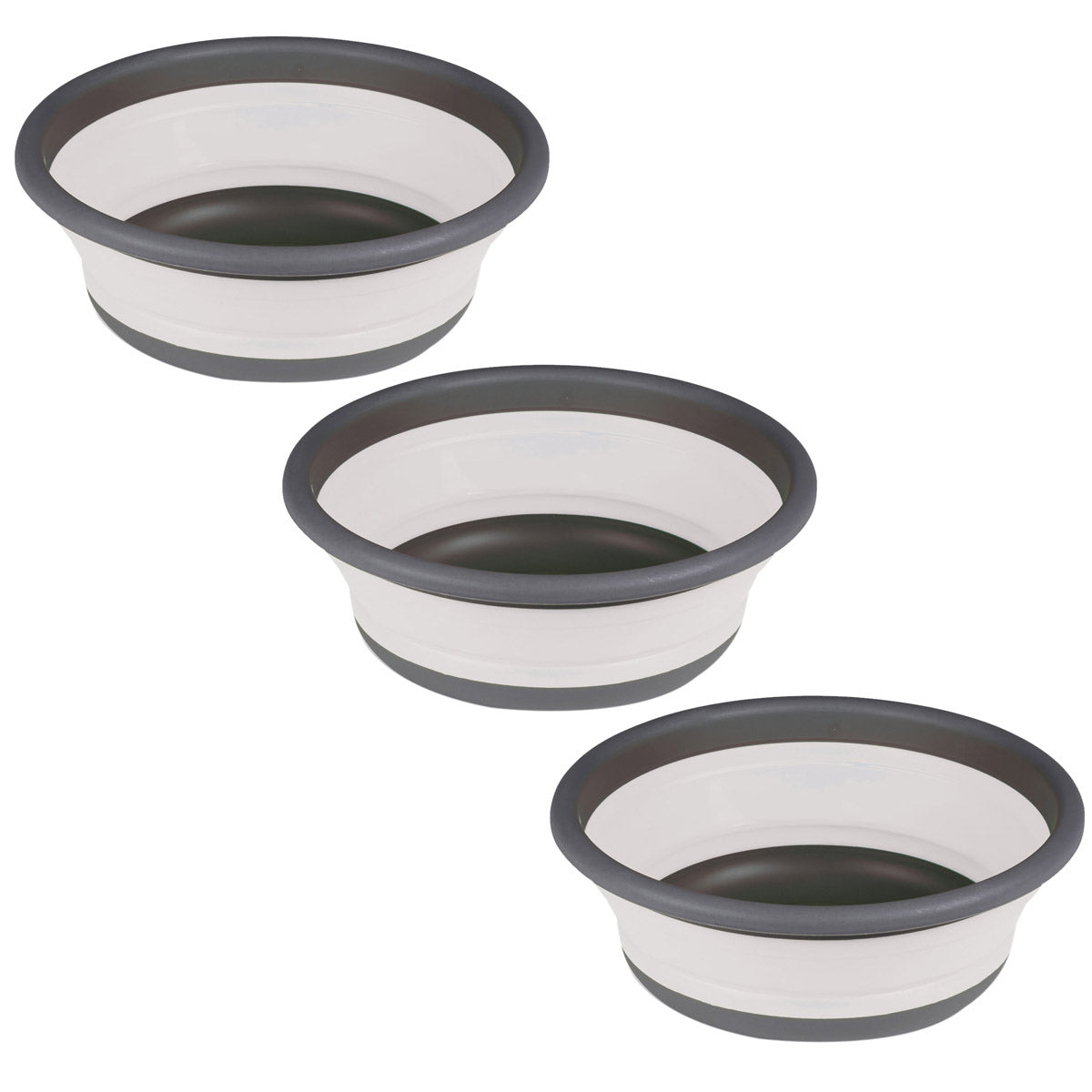 3x Faltbarer Schüssel - rund - 9 Liter - D-37,5x14 cm - gefaltet 5 cm - grau Waschschüssel Spülschüssel Wasserschüssel - Kunststoff Spüle