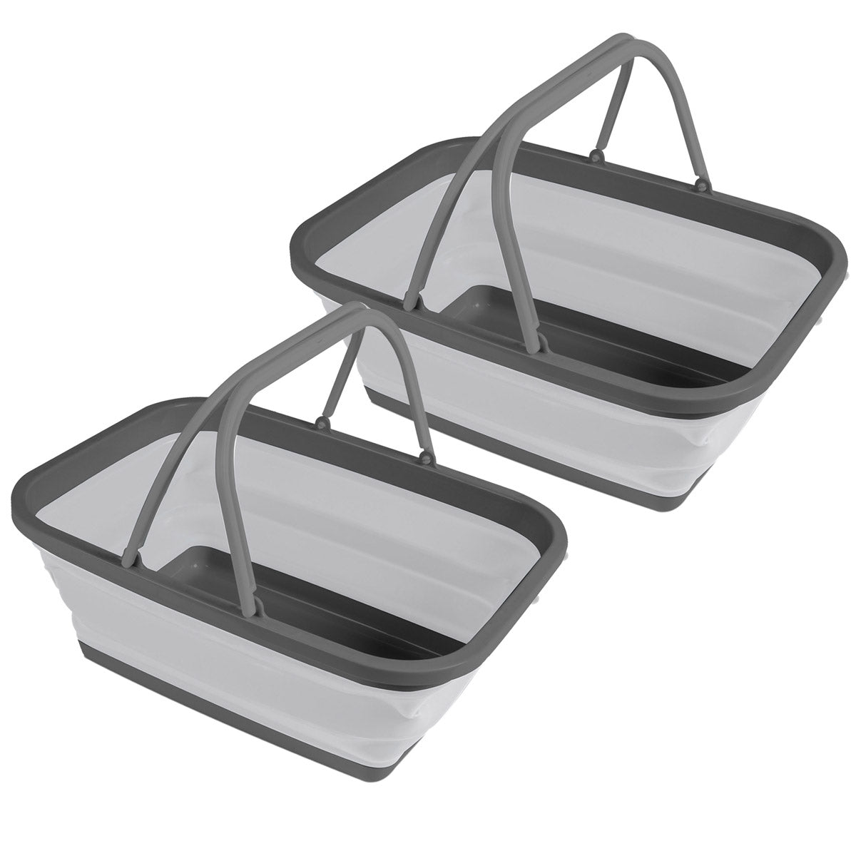 2x Faltbarer Schüssel mit Tragehenkel - rechteckig - 10 Liter - 38x29x15 cm gefaltet 5 cm hoch - grau - Waschschüssel Spülschüssel Wasserschüssel - Kunststoff Spüle