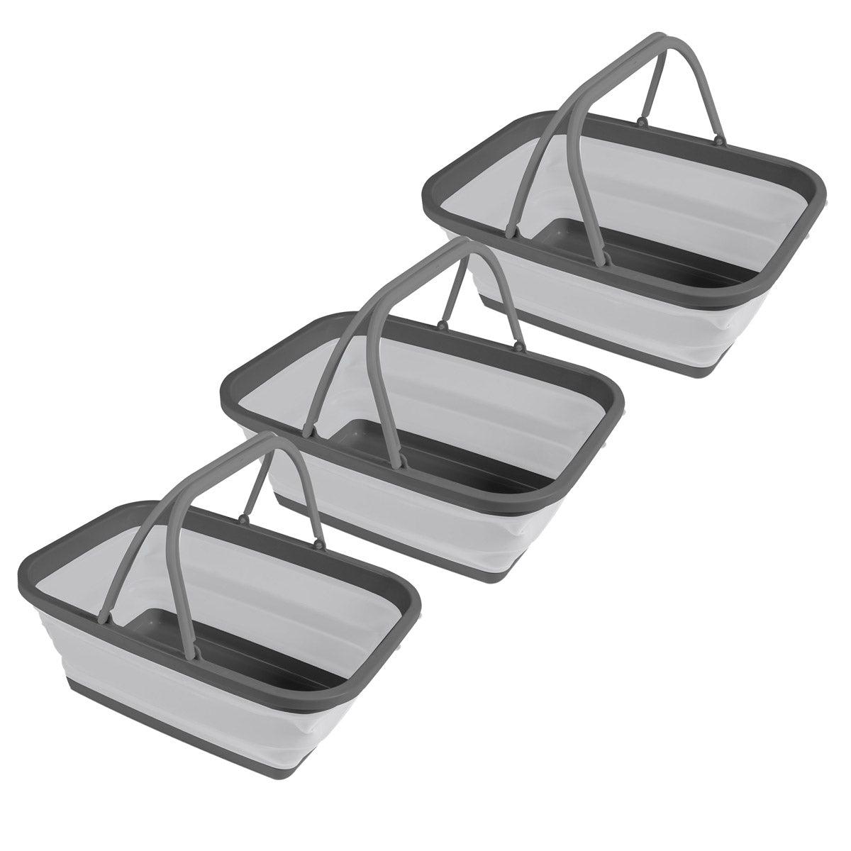 3x Faltbarer Schüssel mit Tragehenkel - rechteckig - 10 Liter - 38x29x15 cm gefaltet 5 cm hoch - grau - Waschschüssel Spülschüssel Wasserschüssel - Kunststoff Spüle