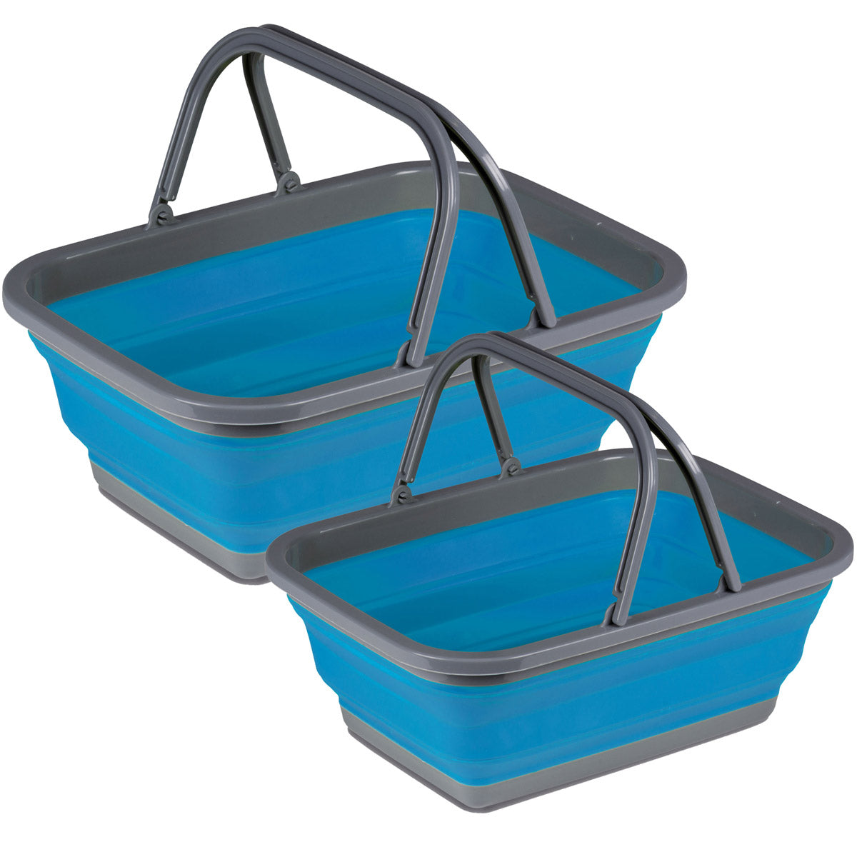 2x Faltbarer Schüssel mit Tragehenkel - rechteckig - 10 Liter + 18 Liter gefaltet 5 cm hoch - blau - Waschschüssel Spülschüssel Wasserschüssel - Kunststoff Spüle