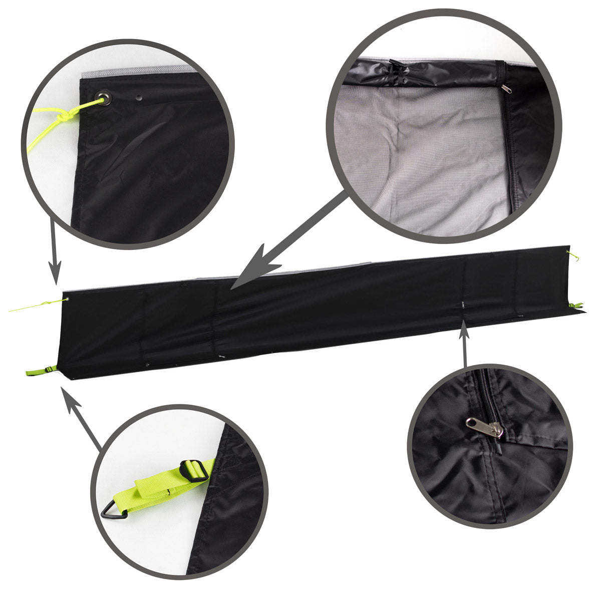 Bodenschürze Wohnwagenschürze Radkastenschürze Windschutz Vorzelt Wagenschürze Schwarz - mit Kederband, Heringen, Abspannseilen