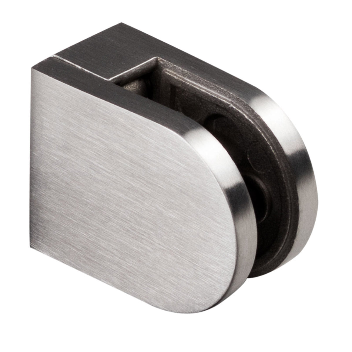 Edelstahl Glashalter halbrund für 10 mm Glas - Glasklemme flach für gerade Flächen Geländer Sicherung