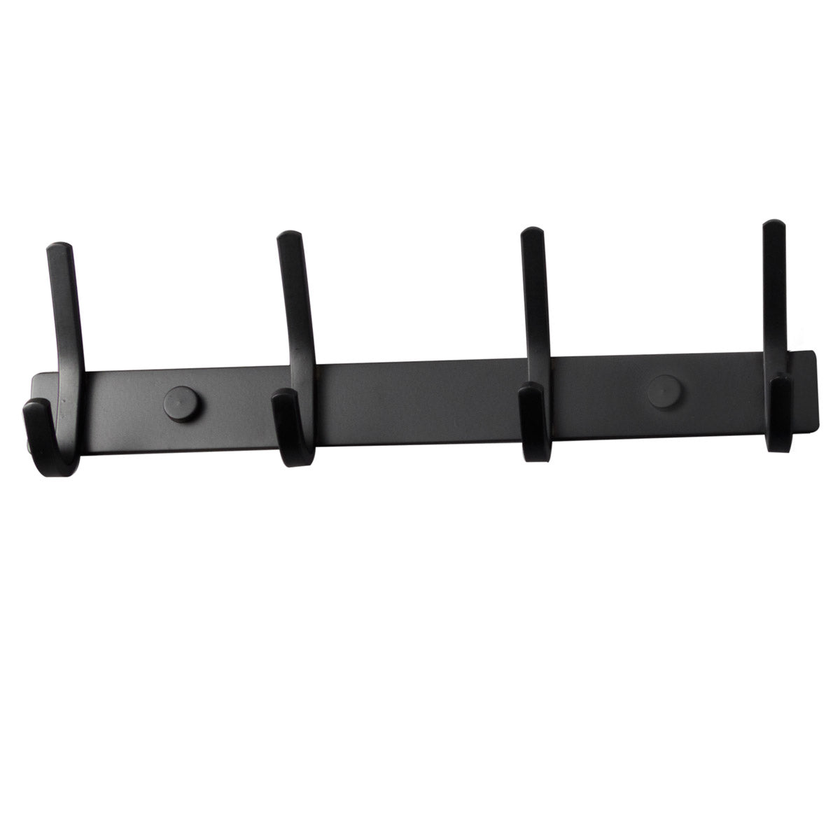 Schwarz Hakenleiste mit 4 Doppelhaken - Edelstahl Garderobe - Wandhaken zum Bohren