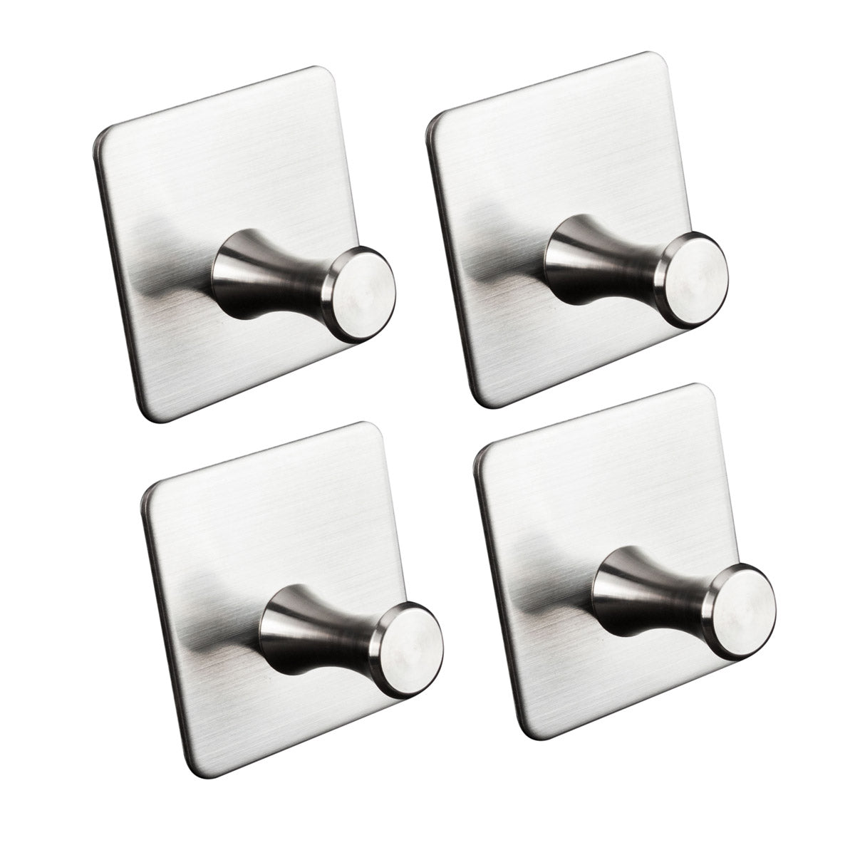 4x Wandhaken - 3M selbstklebend - Edelstahl Haken - Handtuchhaken ohne Bohren Wandhalterung universal Huthaken Klebehaken