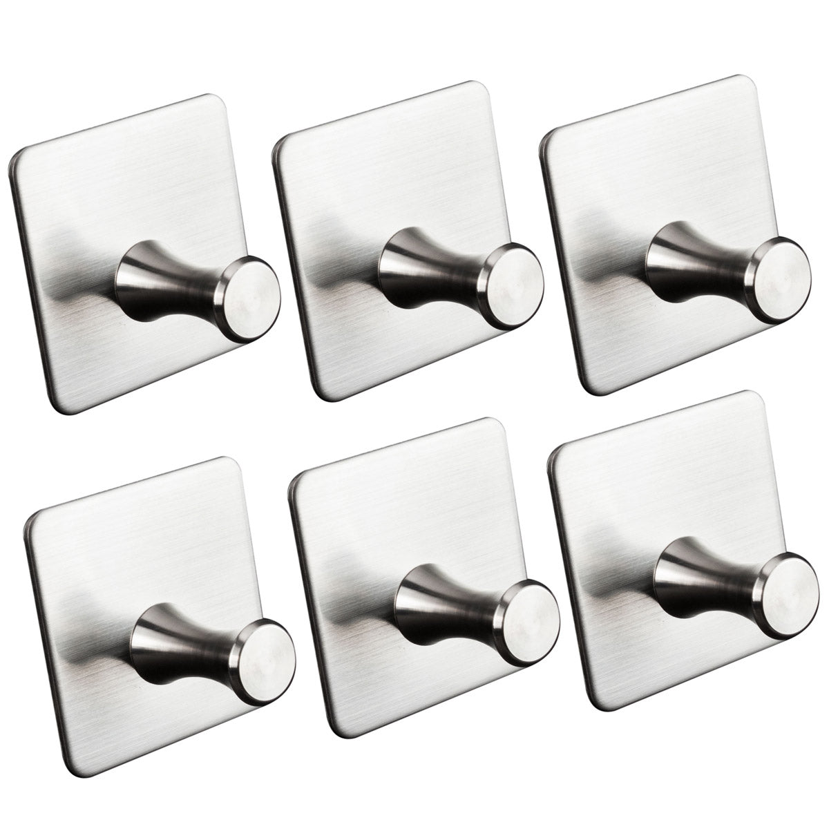 6x Wandhaken - 3M selbstklebend - Edelstahl Haken - Handtuchhaken ohne Bohren Wandhalterung universal Huthaken Klebehaken
