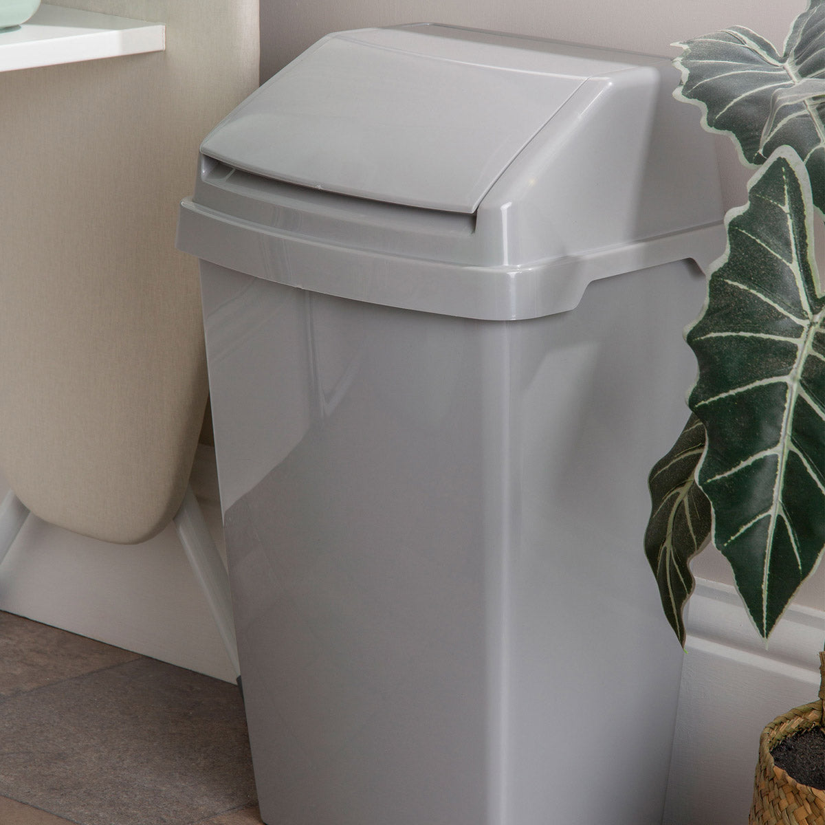 50 Liter Mülleimer mit Klappdeckel 31x42x64 cm - grau - Abfalleimer verschiedene Mengen