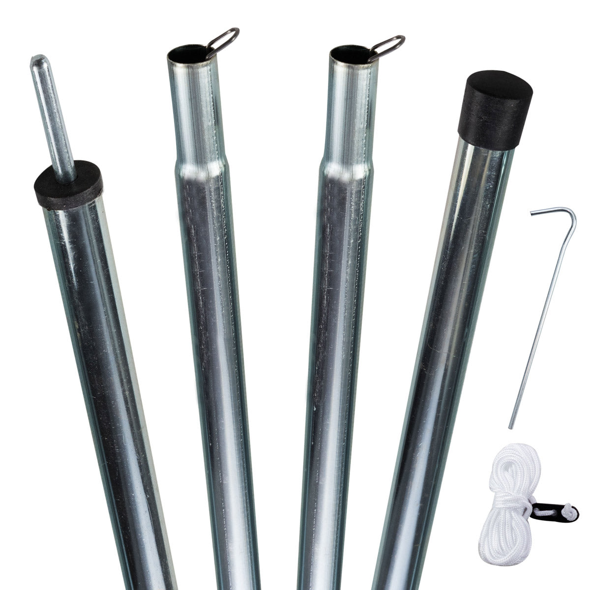 2 STÜCK ZELTSTANGE STAHL-AUFSTELLSTANGE 200 CM - Ø16MM: Stahl - mit Aufstellspitze und Fuß - je 4-teilig - Gesamtlänge je 2m ZUBEHÖR: 2x Abspannleine (je 3,5 m) und 2x Heringe...