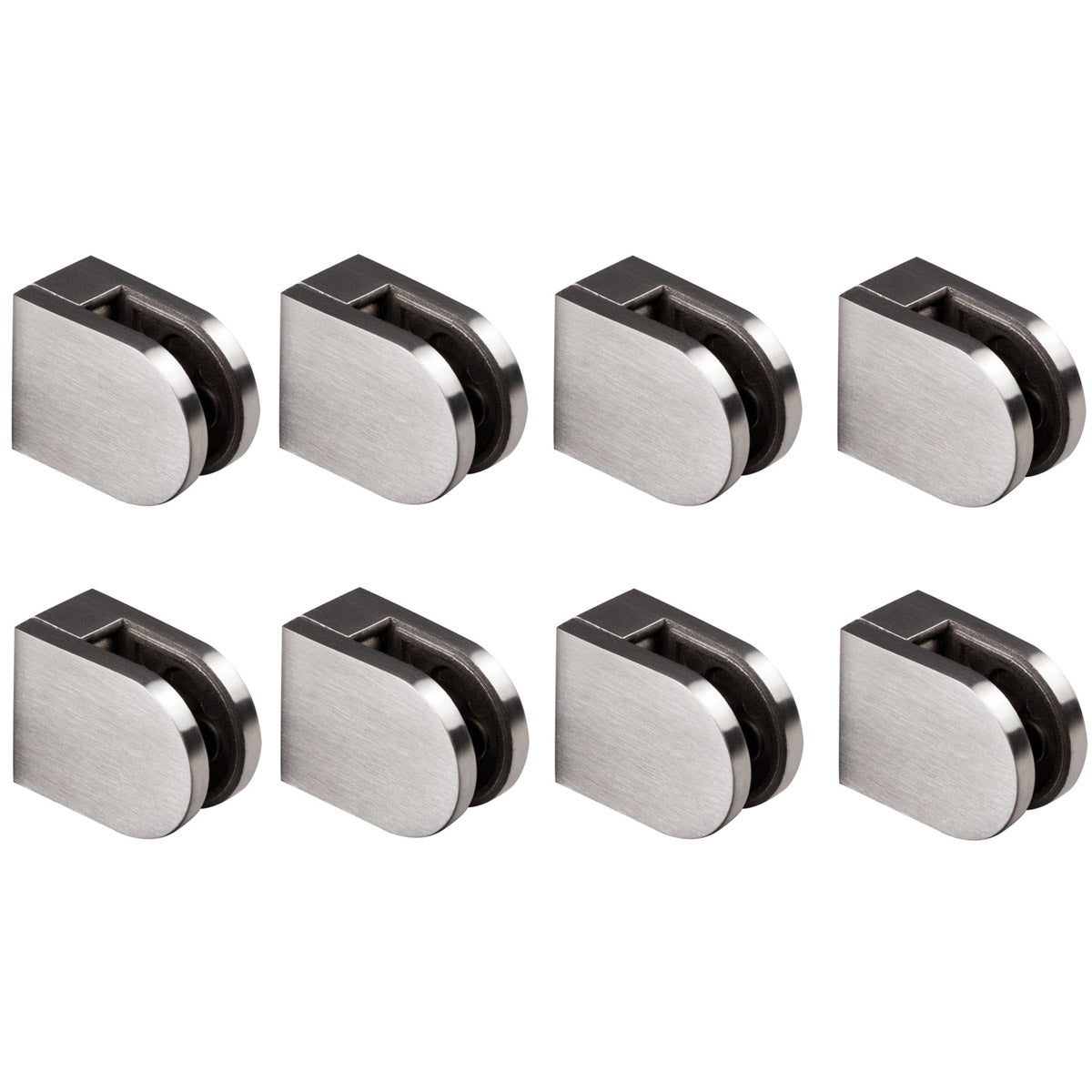 8x Edelstahl Glashalter halbrund für 10 mm Glas - Glasklemme flach für gerade Flächen Geländer Sicherung