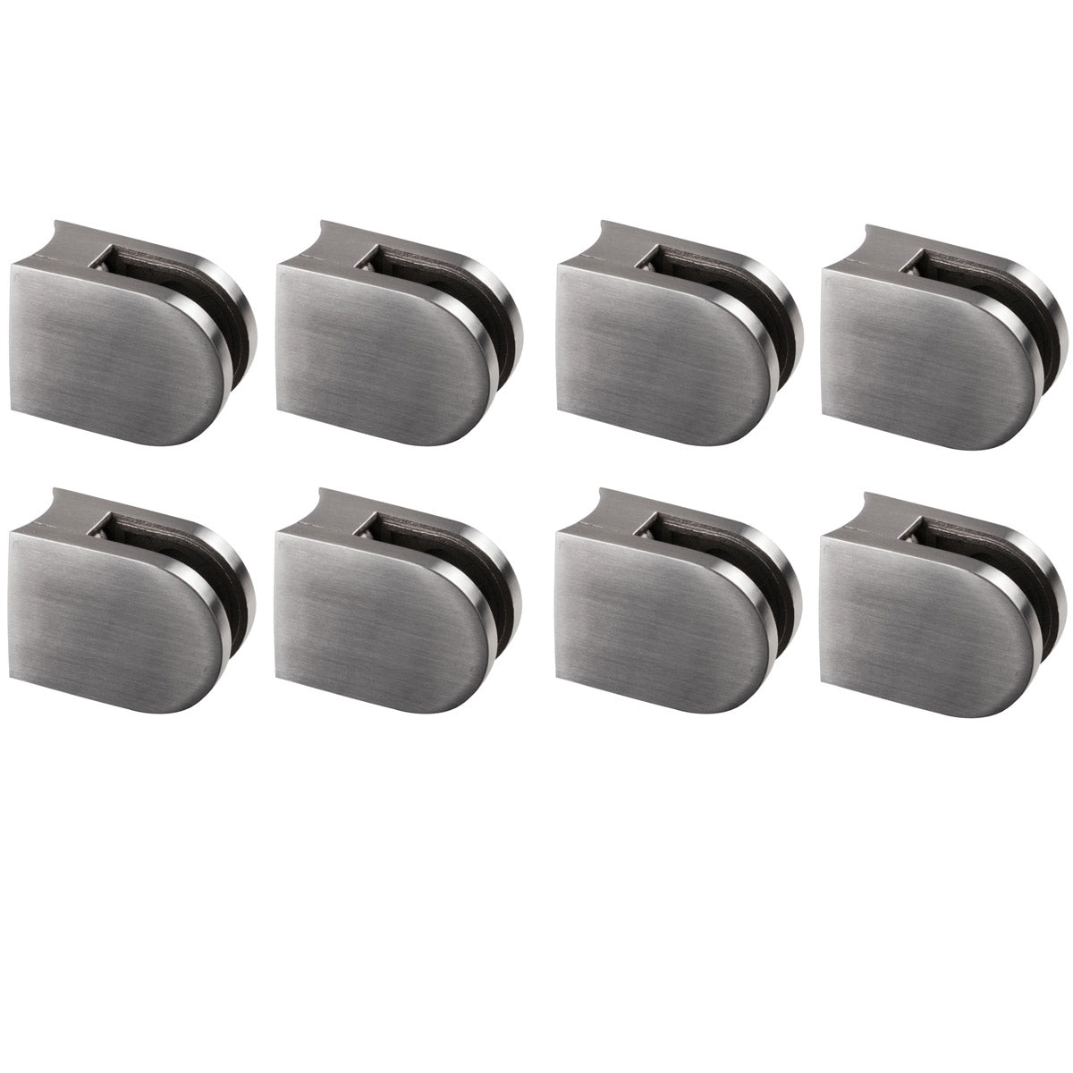8x Edelstahl Glashalter halbrund für 8 mm Glas - Glasklemme rund für Rundrohre Geländer Sicherung