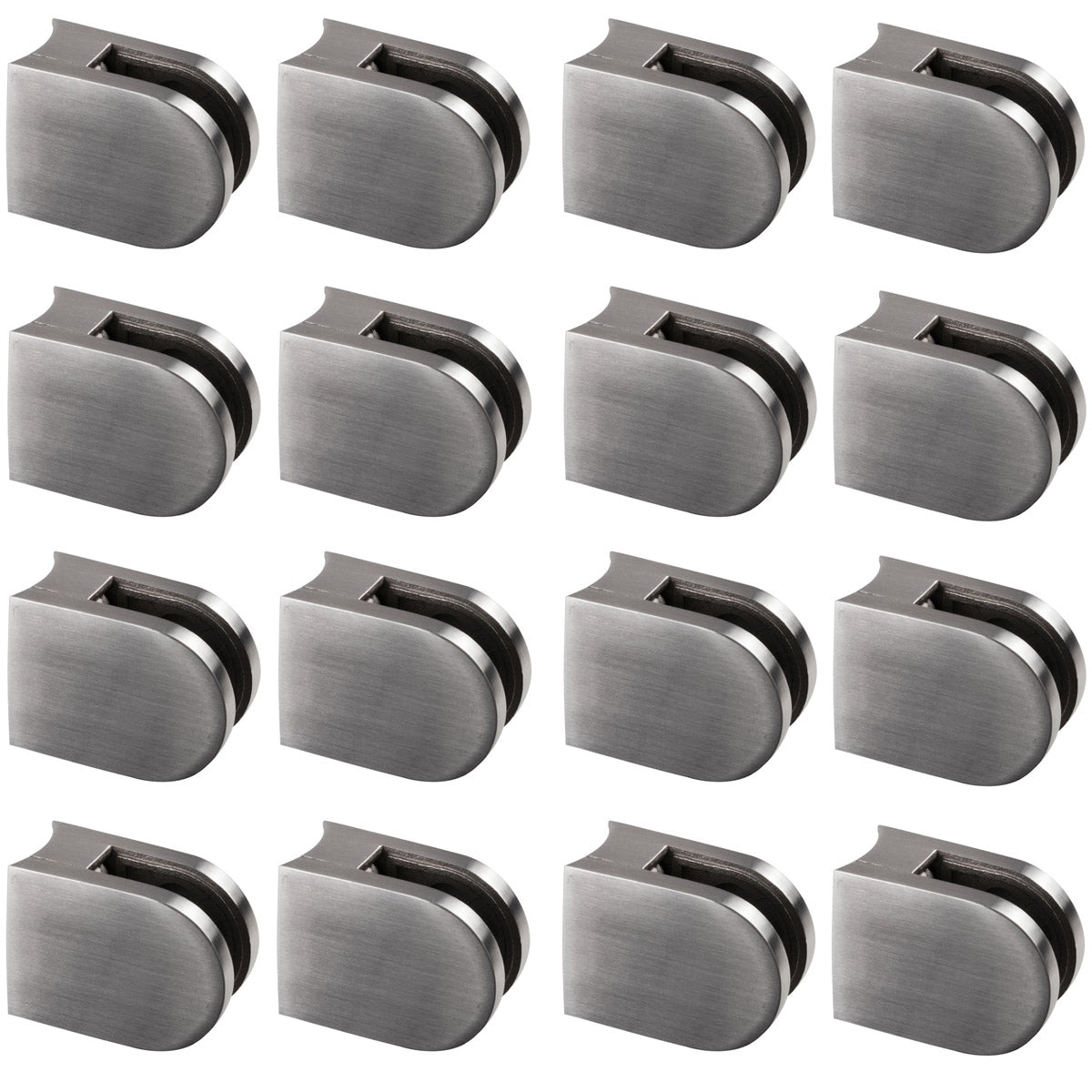 16x Edelstahl Glashalter halbrund für 10 mm Glas - Glasklemme rund für Rundrohre Geländer Sicherung