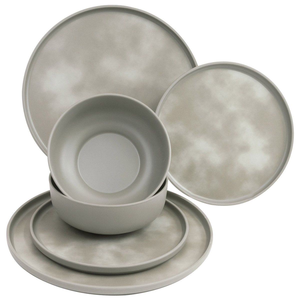 Melamin Geschirr Set mit steilem Rand für 2 Personen - 6 Teile - Campinggeschirr - grau - Essgeschirr elegant spülmaschinengeeignet