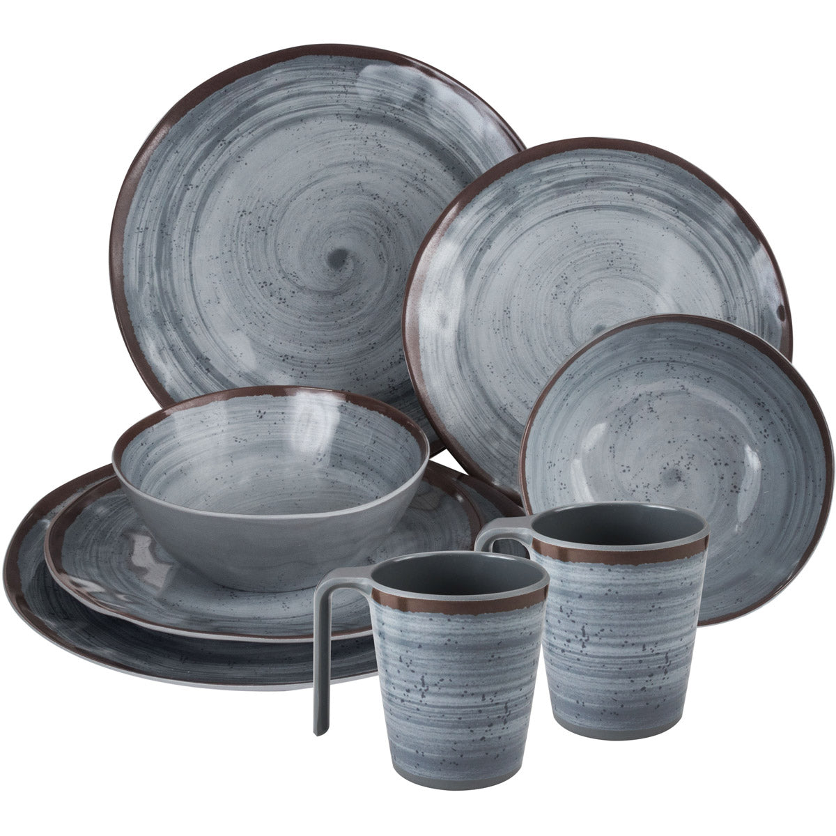 Melamin Geschirr Set für 2 Personen Steingut Optik grau 8 Teile - mit Tellern und Tassen - Campinggeschirr