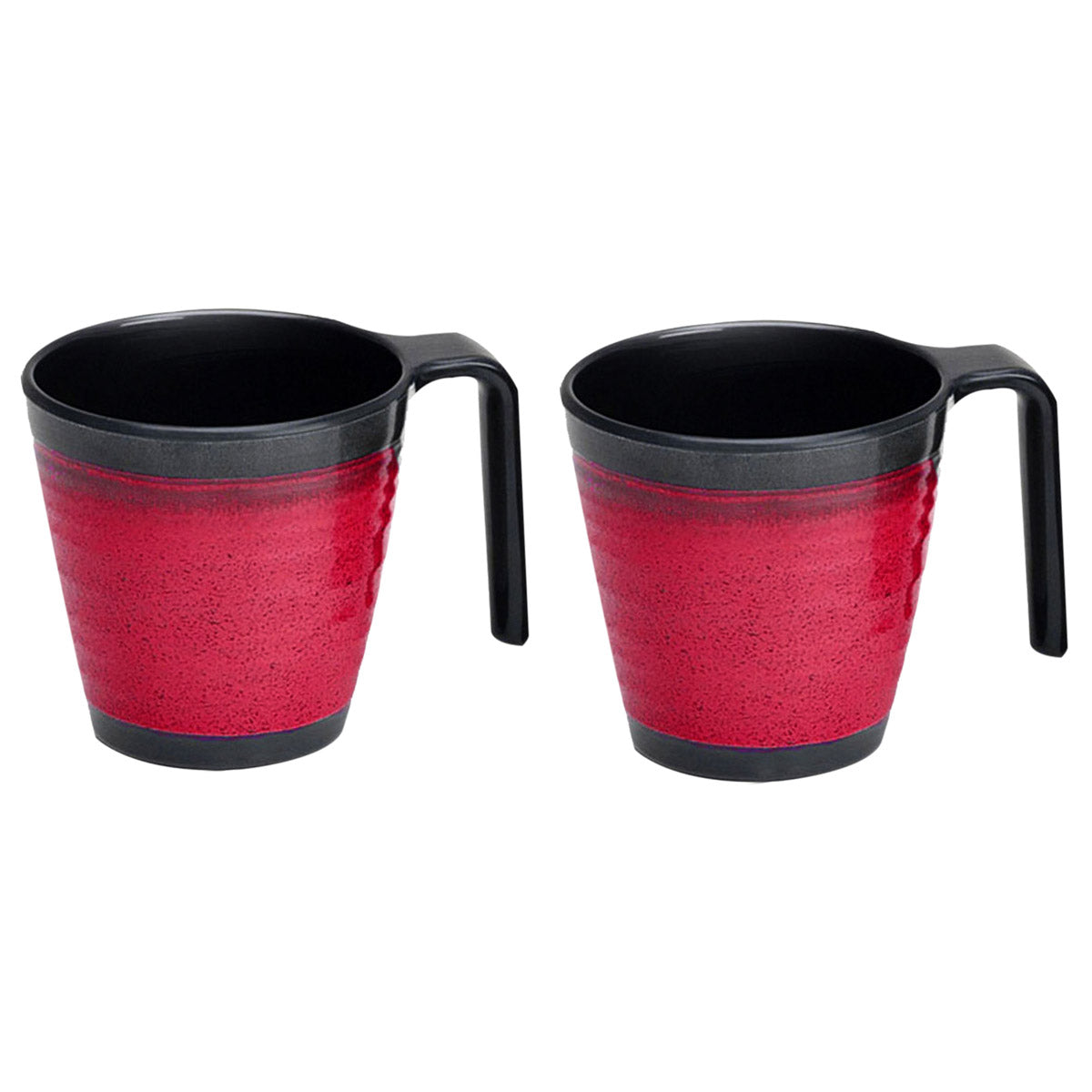 Camping Melamin Tassen - 2 Stück stapelbar jeweils 300ml - Steingut Optik Schwarz-Rot Trinkbecher Kaffeetasse Kaffeebecher Tasse - Henkeltasse Wohnwagen Wohnmobil Geschirr