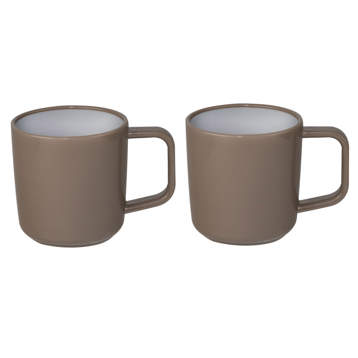 2x 90 Grad Camping Tassen aus ABS-Kunststoff Set Non-Slip Antirutsch 2 Tassen je 350 ml - braun weiß 2 Personen Picknick Camping Outdoor Wohnwagen Wohnmobil Geschirr