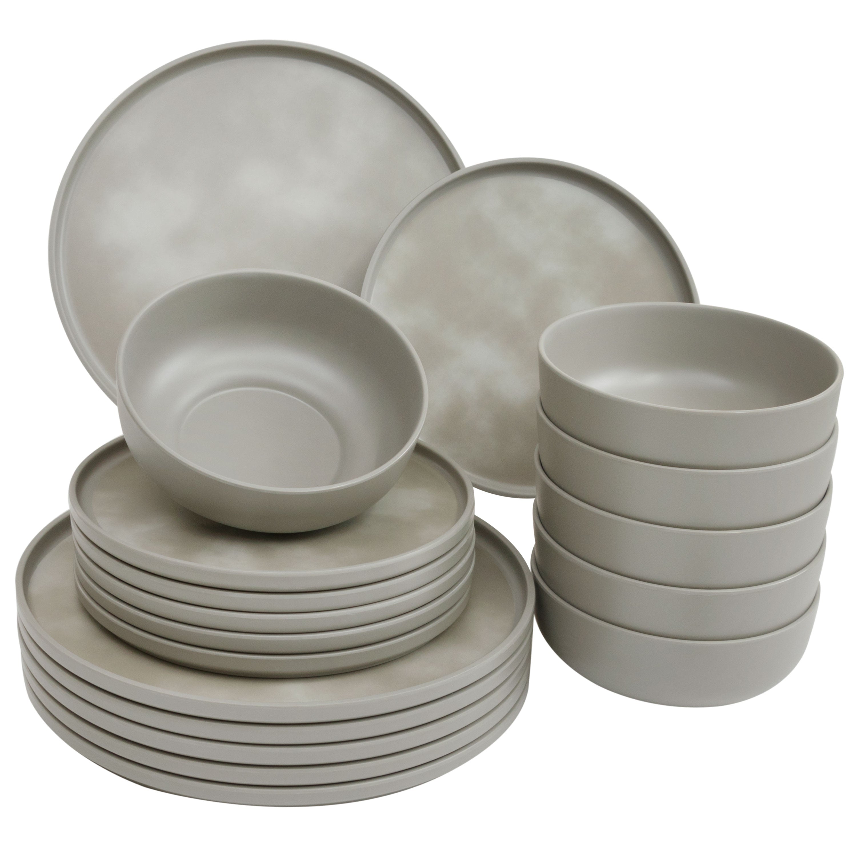 Melamin Geschirr Set mit steilem Rand für 6Personen - 18 Teile - Campinggeschirr - grau - Essgeschirr elegant spülmaschinengeeignet