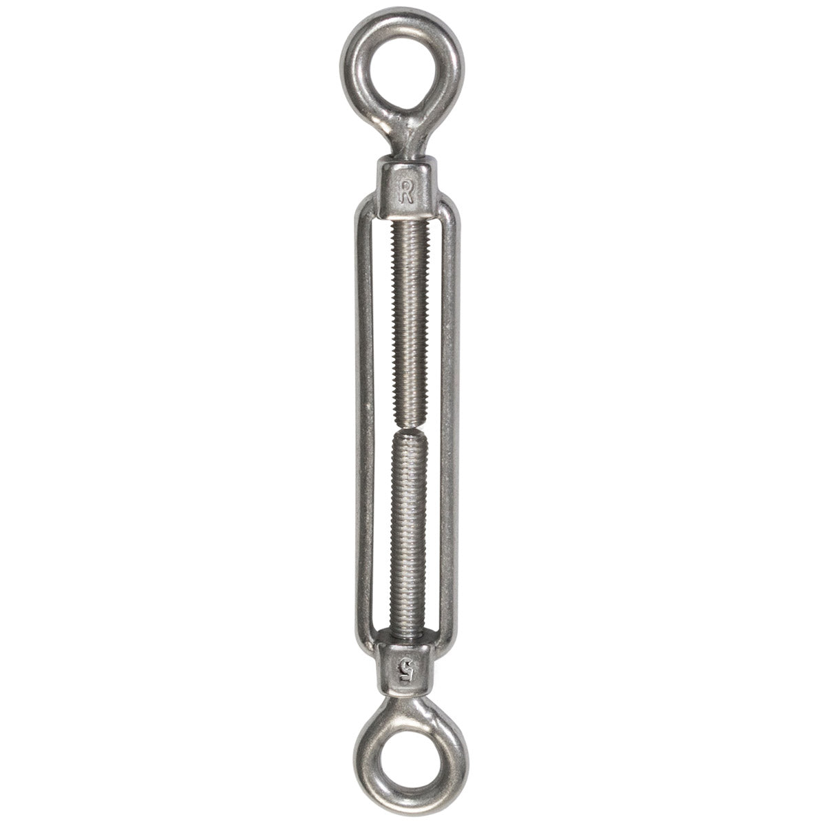 SPANNSCHLOSS M5 MIT BEIDSEITIGEN ÖSEN: Edelstahl - SS304 - V2A - 11-17,5 cm lang - Schraube Ø 5 mm - Produktgewicht ca. 30 g - Arbeitslast 160 kg - Bruchlast...