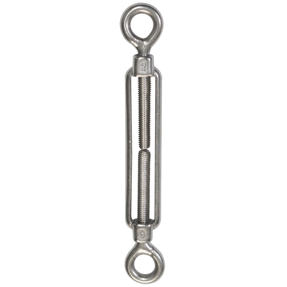 SPANNSCHLOSS M6 MIT BEIDSEITIGEN ÖSEN: Edelstahl - SS304 - V2A - 14,5-21,5 cm lang - Schraube Ø 6 mm - Produktgewicht ca. 60 g - Arbeitslast 300 kg - Bruchlast...