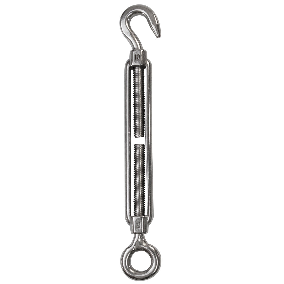 SPANNSCHLOSS M10 MIT ÖSE UND HAKEN: Edelstahl - SS304 - V2A - 22,5-34 cm lang - Schraube Ø 10 mm - Produktgewicht ca. 240 g - Arbeitslast 200 kg -...