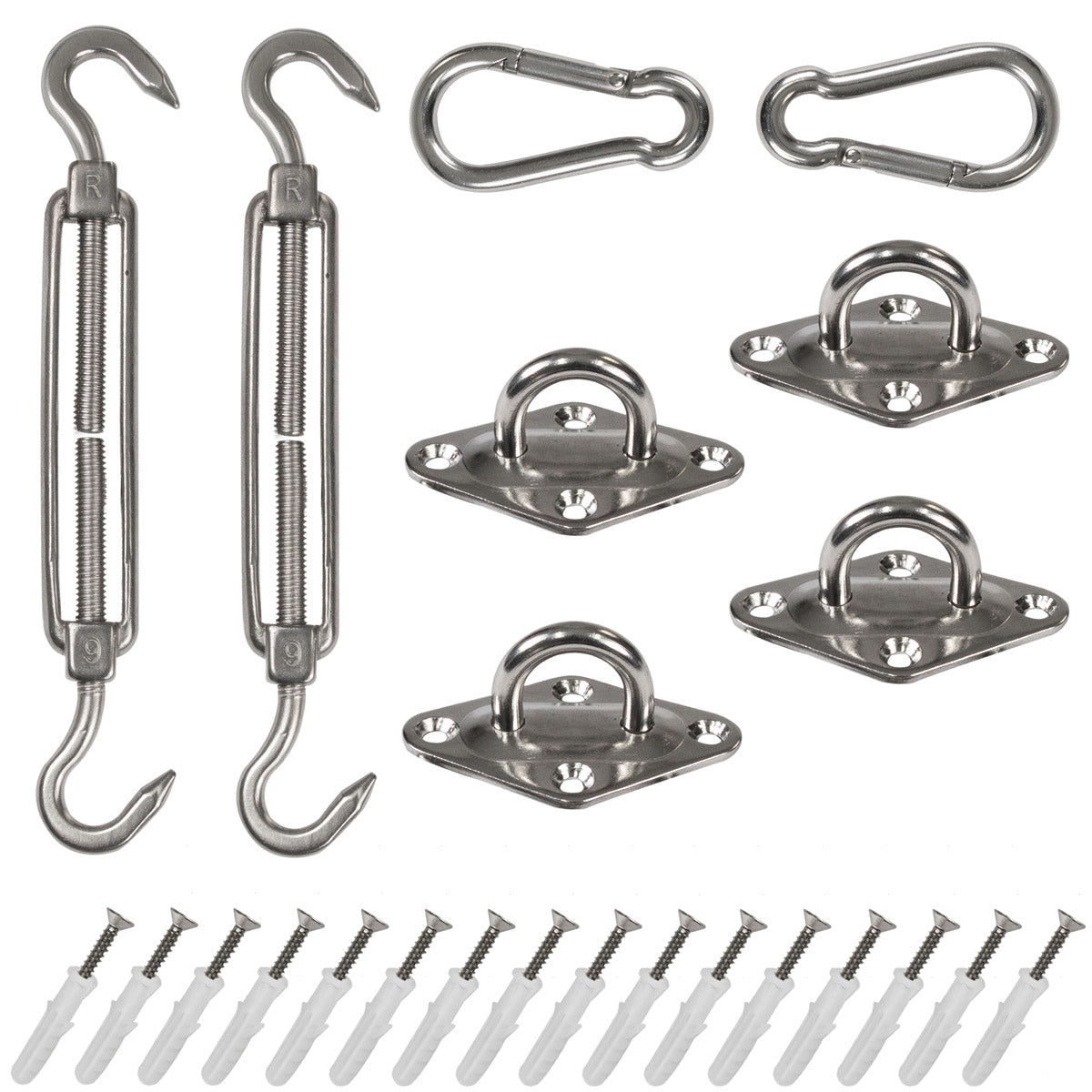 Edelstahl Sonnensegel Befestigungsset 40 Teile - V2A SS304 - Wantenspanner Spannschloss Karabiner Sonnensegelspanner Markisenbefestigung Segelbefestigung Aufhängung Augplatte Montage Set Kit Wandhalterung