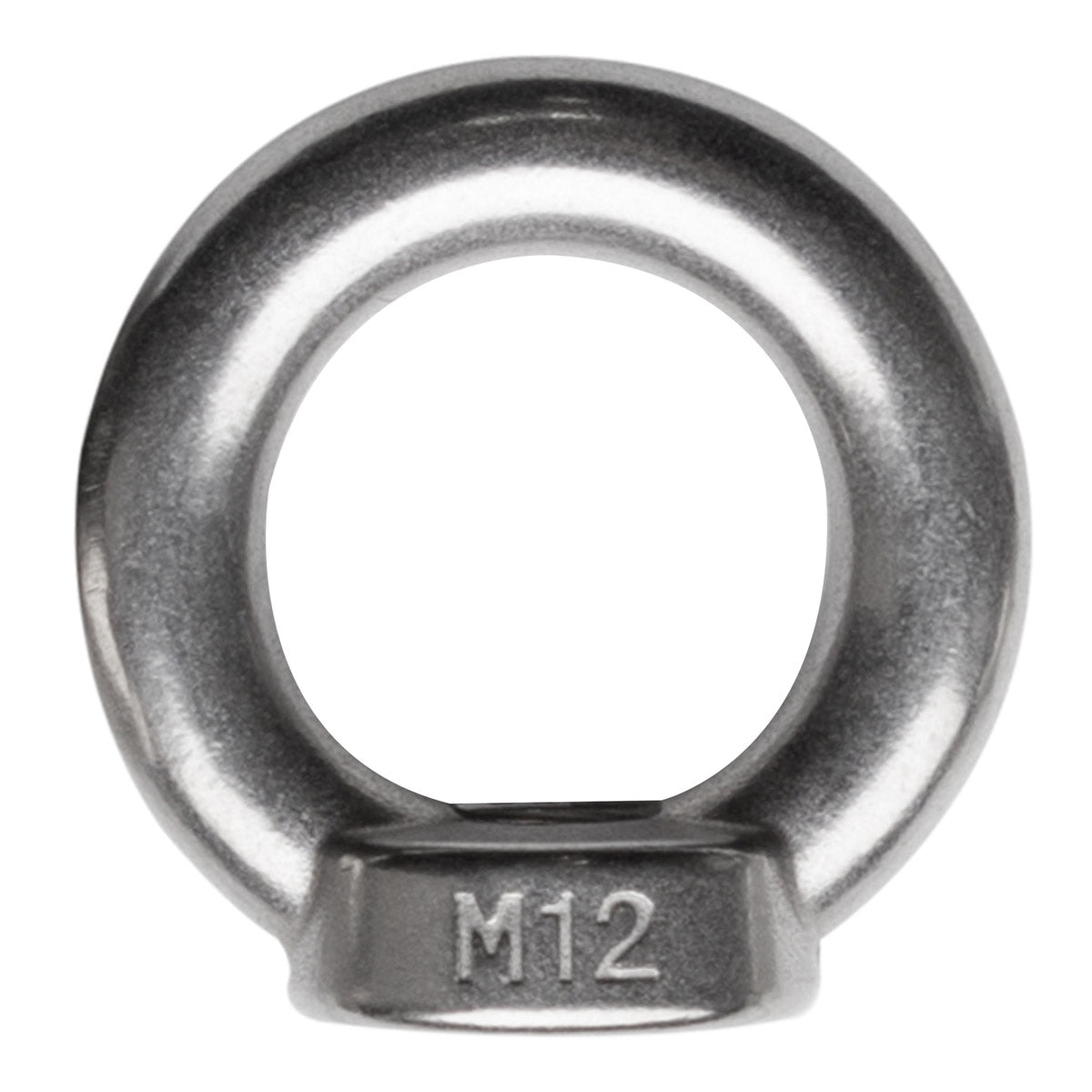 Edelstahl M12 Ringmutter V2A 304 - Ösenmutter Augenmutter Ringösen Traglast 1000 kg Hebegeräte Hebezubehör Heberingmutter Hebering Loch für Kabelseil Eye nut Ähnlich-DIN582