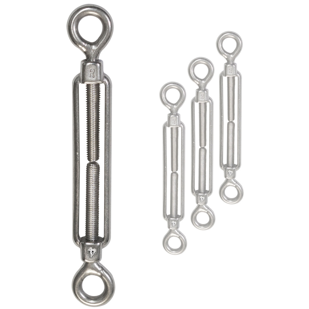 4x Edelstahl Spannschloss Spannschraube D-4mm - M4 - beidseitigen Ösen V2A - Seilspanner Segelspanner für Drahtseil - 10-14cm lang Wantenspanner Bruchlast 450 kg