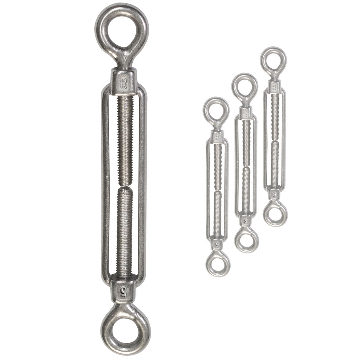 4x Edelstahl Spannschloss Spannschraube D-5mm - M5 - beidseitigen Ösen V2A - Seilspanner Segelspanner für Drahtseil - 11-17cm lang Wantenspanner Bruchlast 650kg