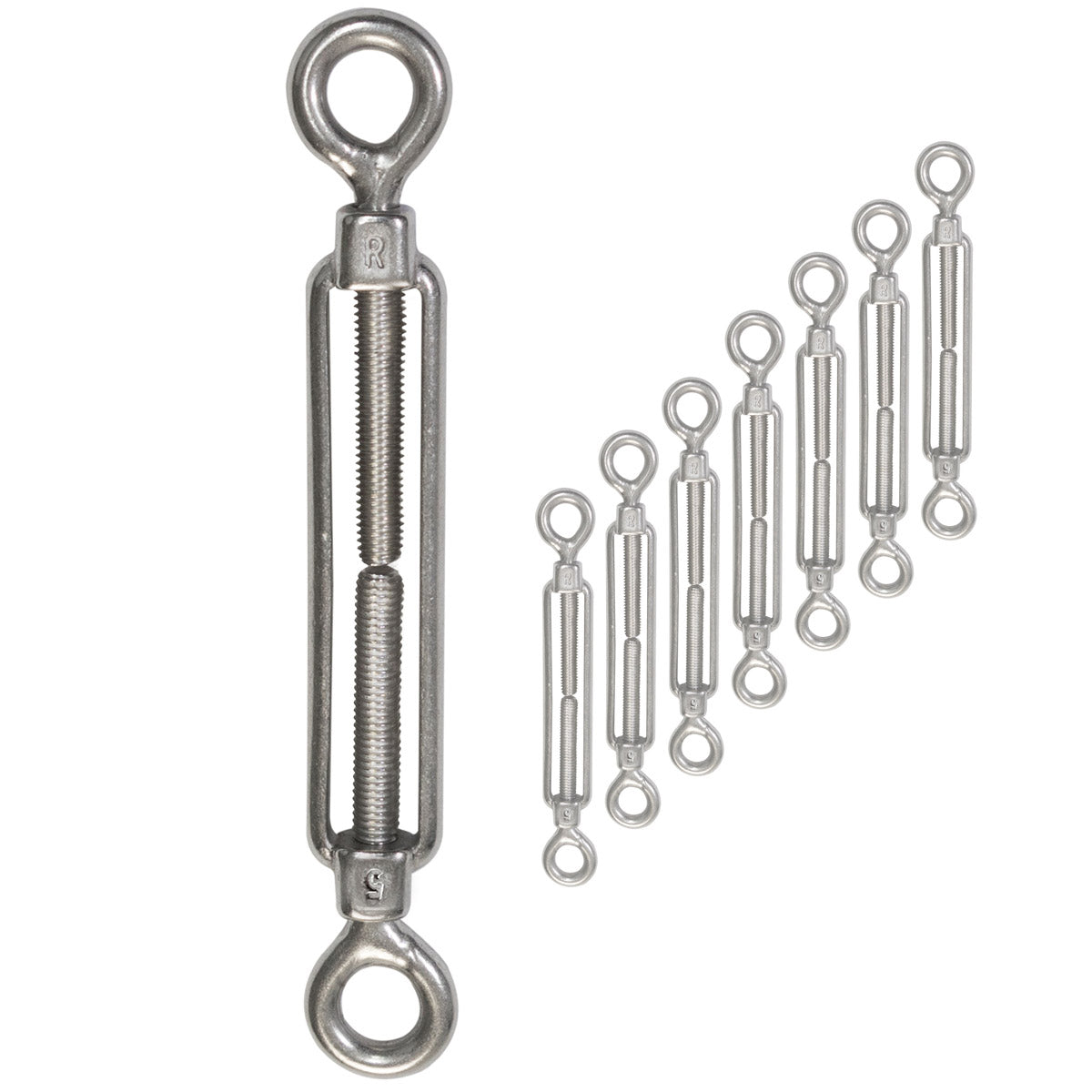 8x Edelstahl Spannschloss Spannschraube D-5mm - M5 - beidseitigen Ösen - V2A Seilspanner Segelspanner für Drahtseil - 11-17cm lang Wantenspanner Bruchlast 650kg