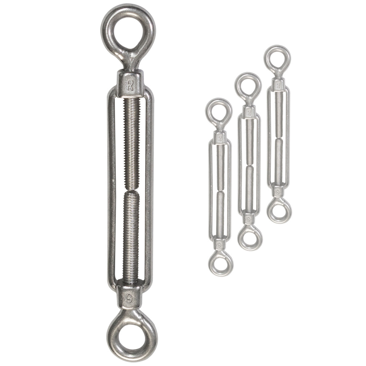 4x Edelstahl Spannschloss Spannschraube D-6mm - M6 - beidseitigen Ösen V2A - Seilspanner Segelspanner für Drahtseil - 14-21cm lang Wantenspanner Bruchlast 1200kg